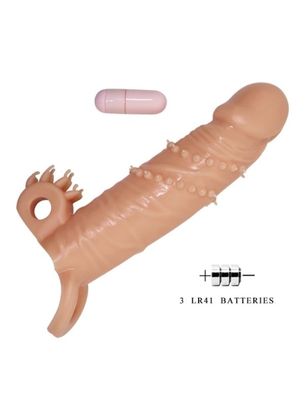 * 1.sınıf TPR malzemeden üretilmiştir.* Uç kısmı destekleyici yumuşak başlı ve klitoris titreşimlidir.* Özel kabartma damarlı yüzeylidir.* Sessiz ve hassas titreşimi sayesinde klitoral uyarı sağlayarak karşı tarafa ekstra zevk verir.* Esnek yapısı sayesinde penisi tam olarak kavrar.* Su geçirmez özelliktedir.* Esnek ve stretchy yapısı ile tüm penisi kavrama özelliğine sahiptir.* Baş kısmı 4 cm dolguludur.* Testise geçen halkası sayesinde penisi tam kavrar,kayma yapmaz.* Cilt dostu malzemeden üretilmiştir.* Kolay temizlenebilir.* Tek kullanımlık değildir, temizliğini sağlayarak uzun süre kullanabilirsiniz.* Pilleri değiştirilebilir.* Uzunluk : 17 cm* Çap : 4 cm* Ağırlık : 105 gr