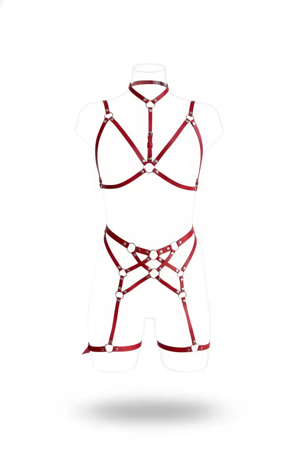 Bordo Jartiyer Harness Suni Deri O-Halka Detaylı Vücut Takımı - APFT507