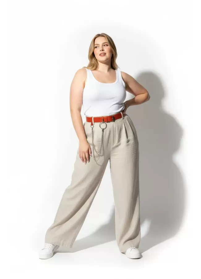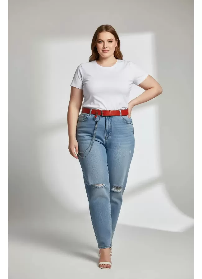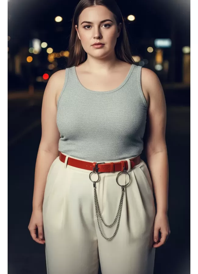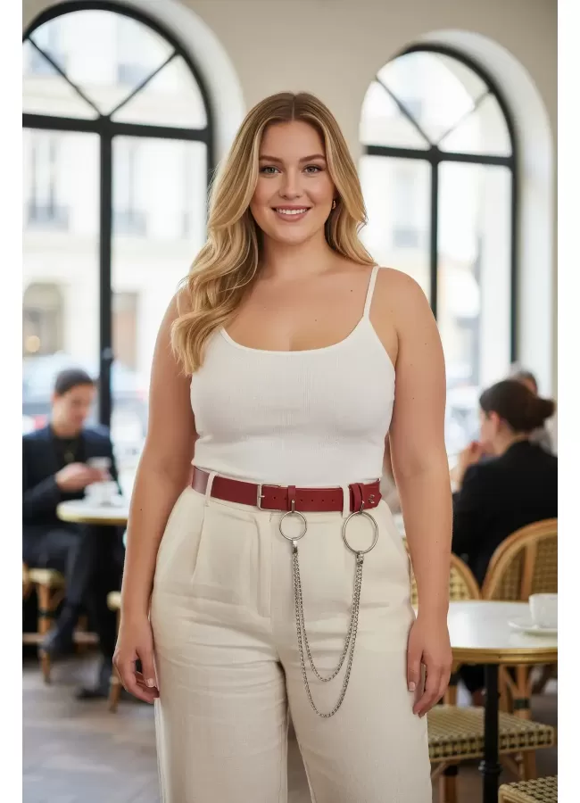 Büyük Beden Bordo Kadın Deri Kemer Halka ve Zincir Detaylı - APFT779