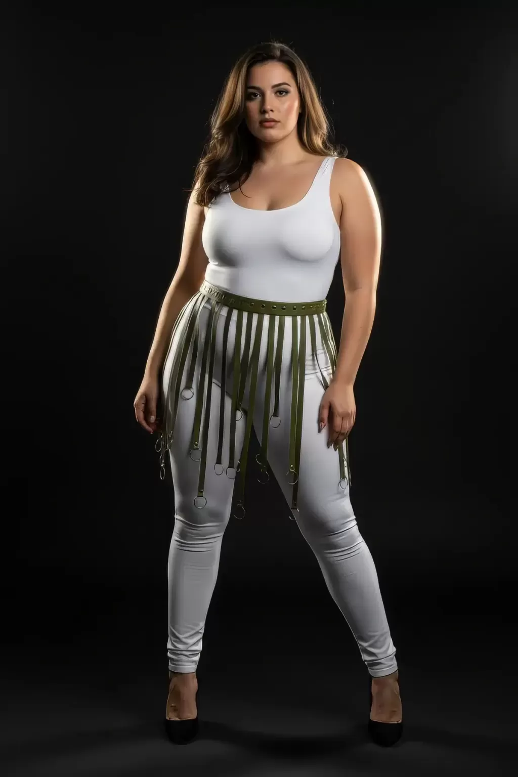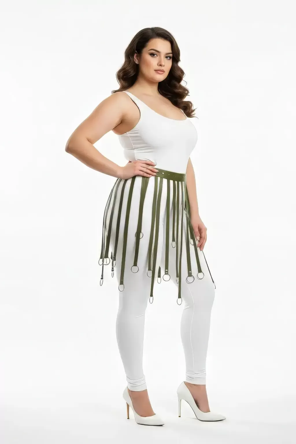 Büyük Beden Haki Halka Detaylı Deri Etek Aksesuarı Kombin Tamamlayıcı - APFT579