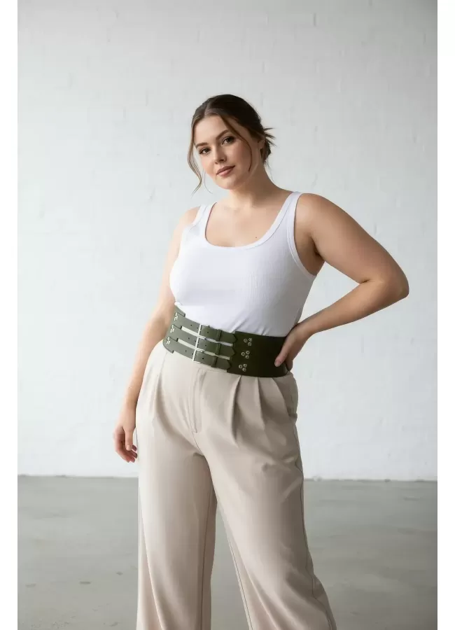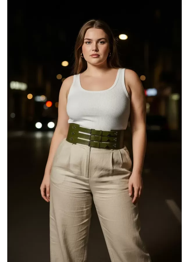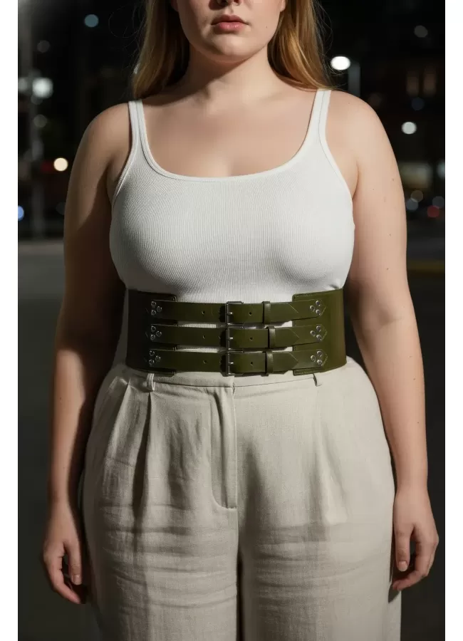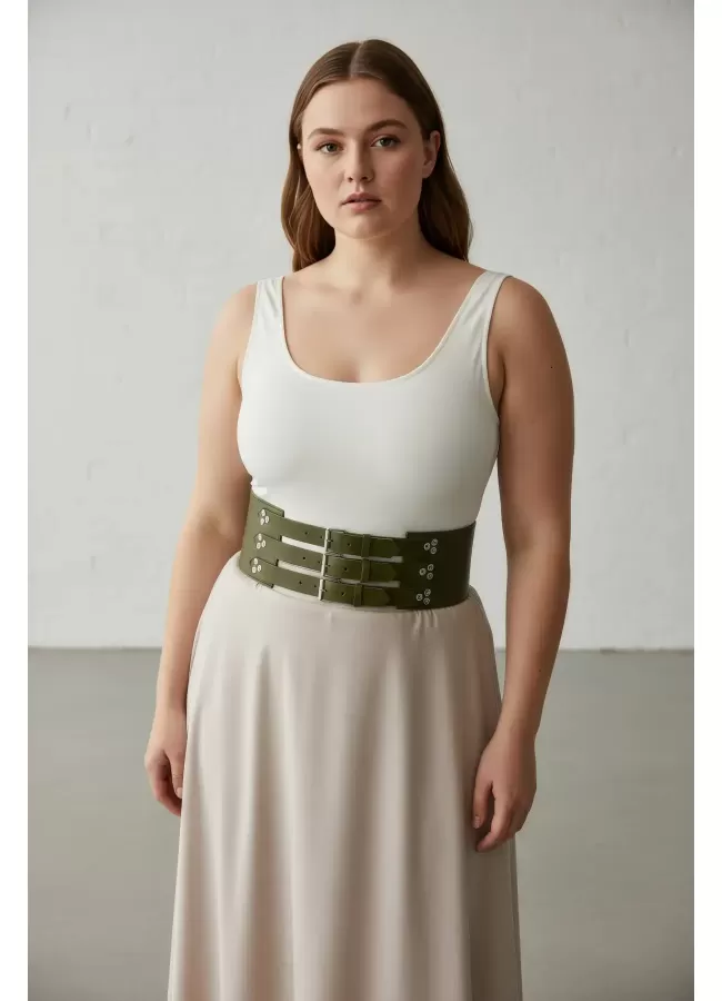 Büyük Beden Taba Kadın Korse Kemer Omuz Askılı Bağcık Detaylı - APFT1429