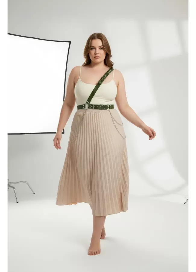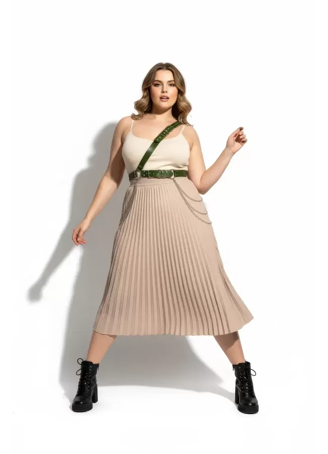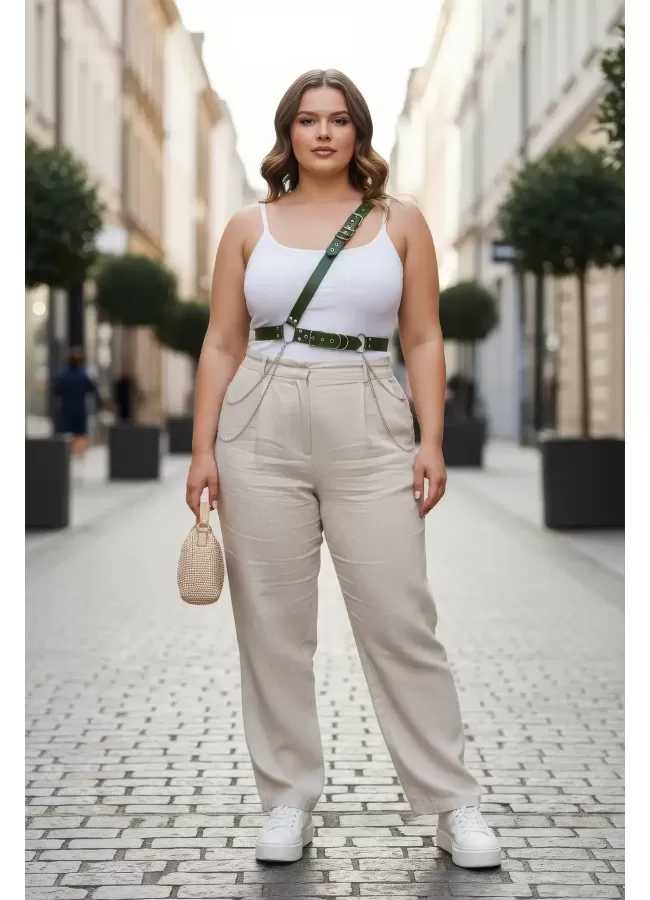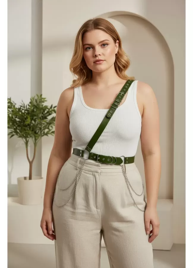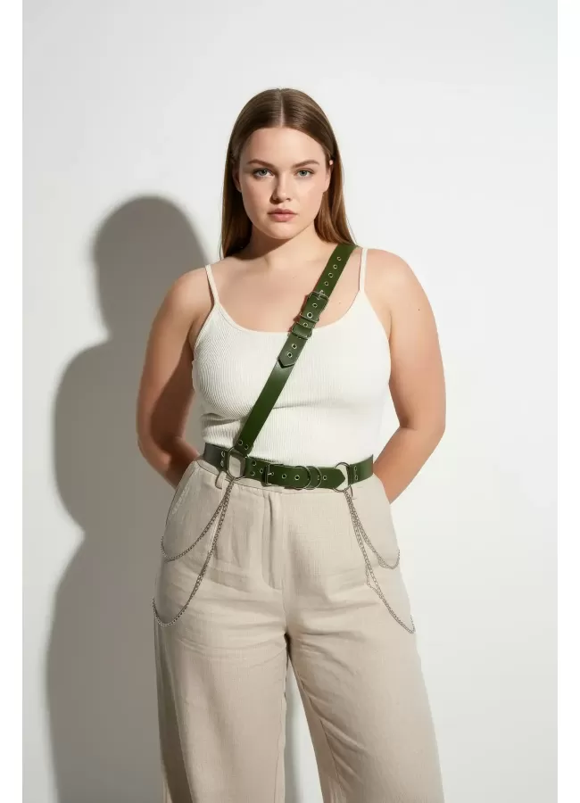 Büyük Beden Haki Kadın Deri Vücut Kemeri Zincir Detaylı - APFT813