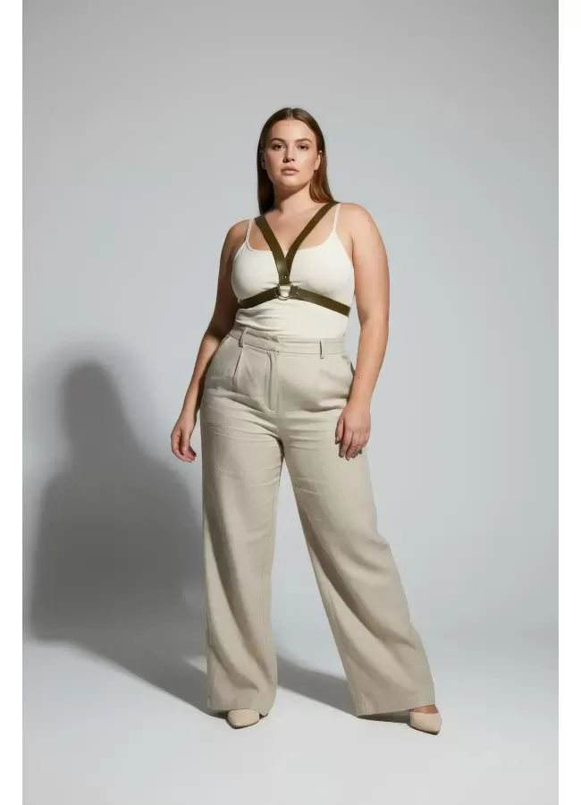 Büyük Beden Taba Kadın Korse Kemer Omuz Askılı Bağcık Detaylı - APFT1429