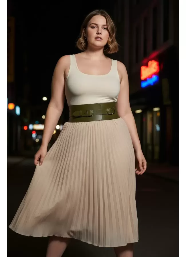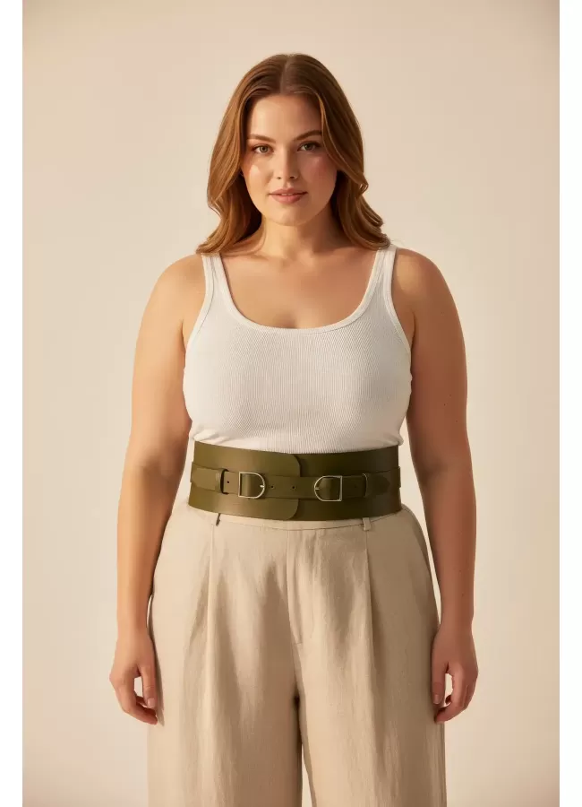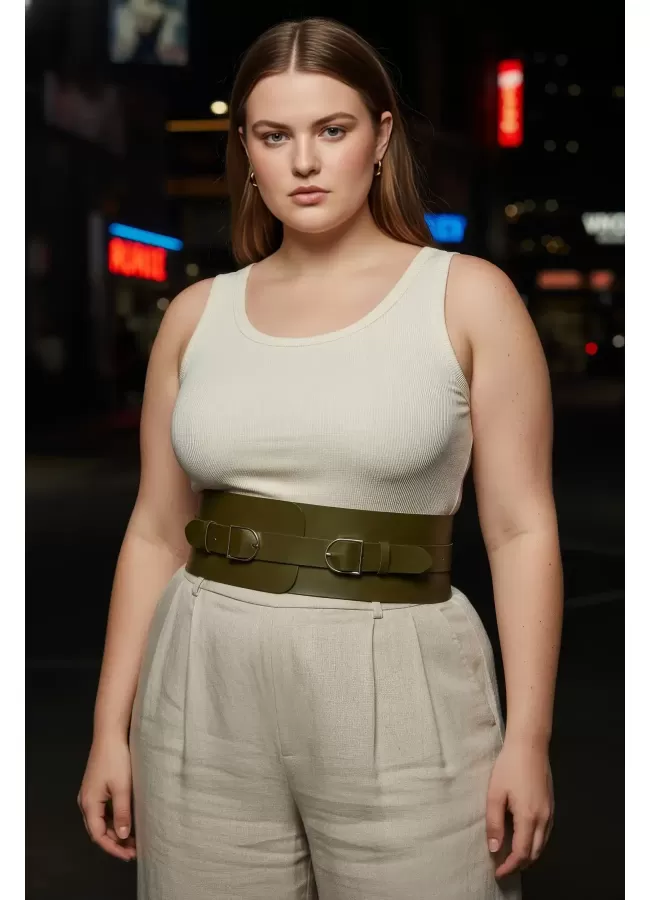 Büyük Beden Taba Kadın Korse Kemer Omuz Askılı Bağcık Detaylı - APFT1429