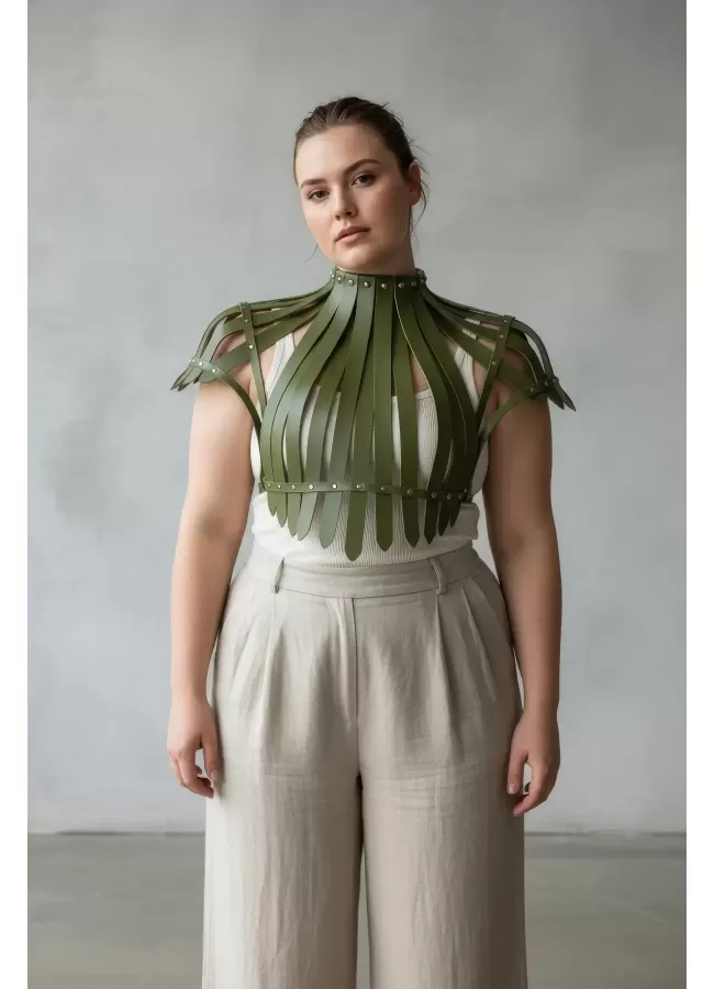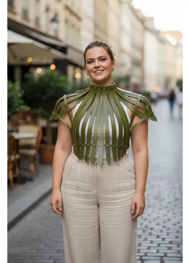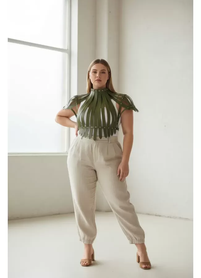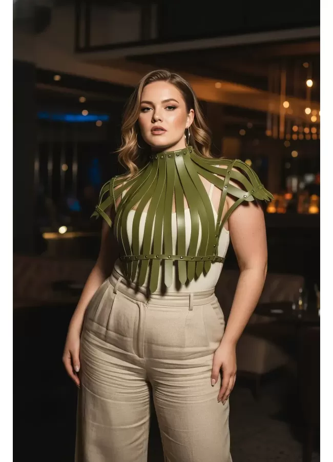 Büyük Beden Haki Kadın Kemer Korse Görünümlü Deri Vücut Aksesuarı - APFT1257