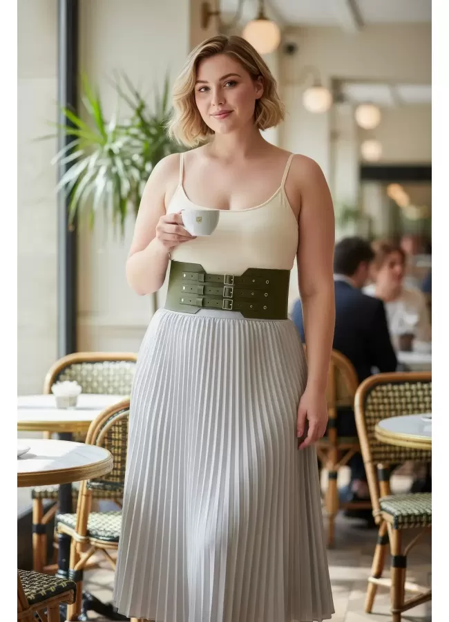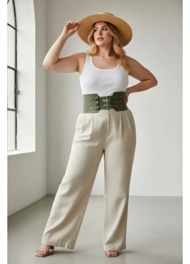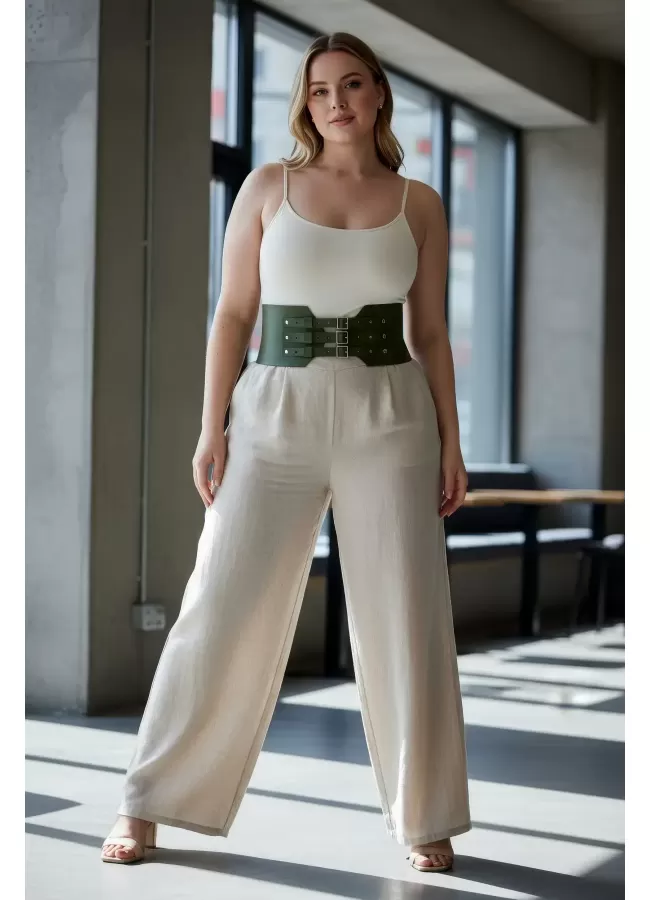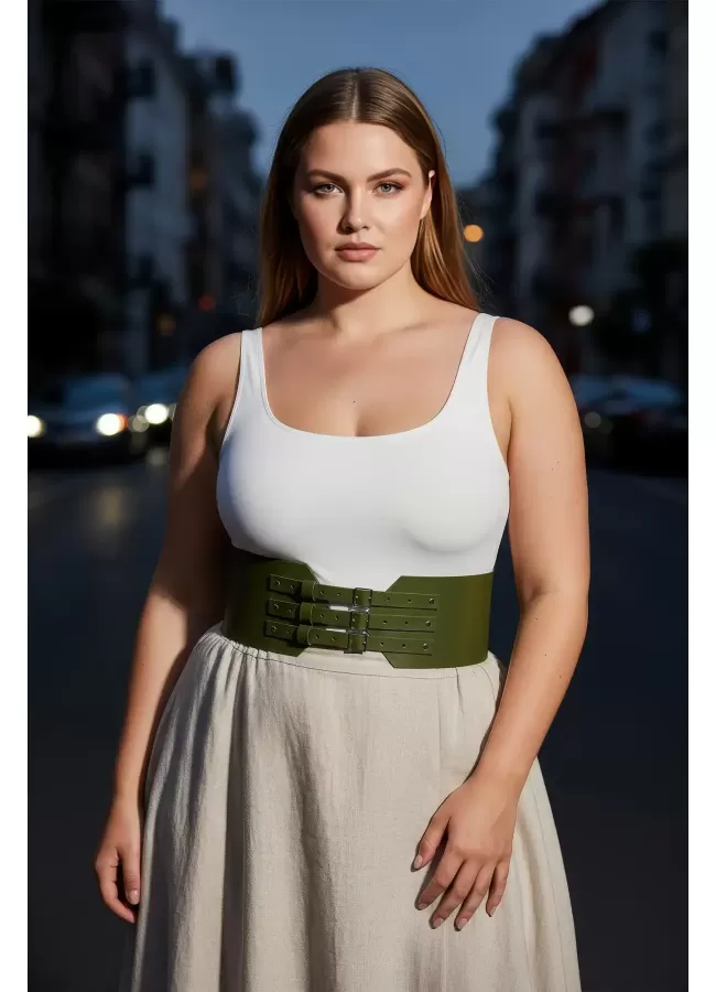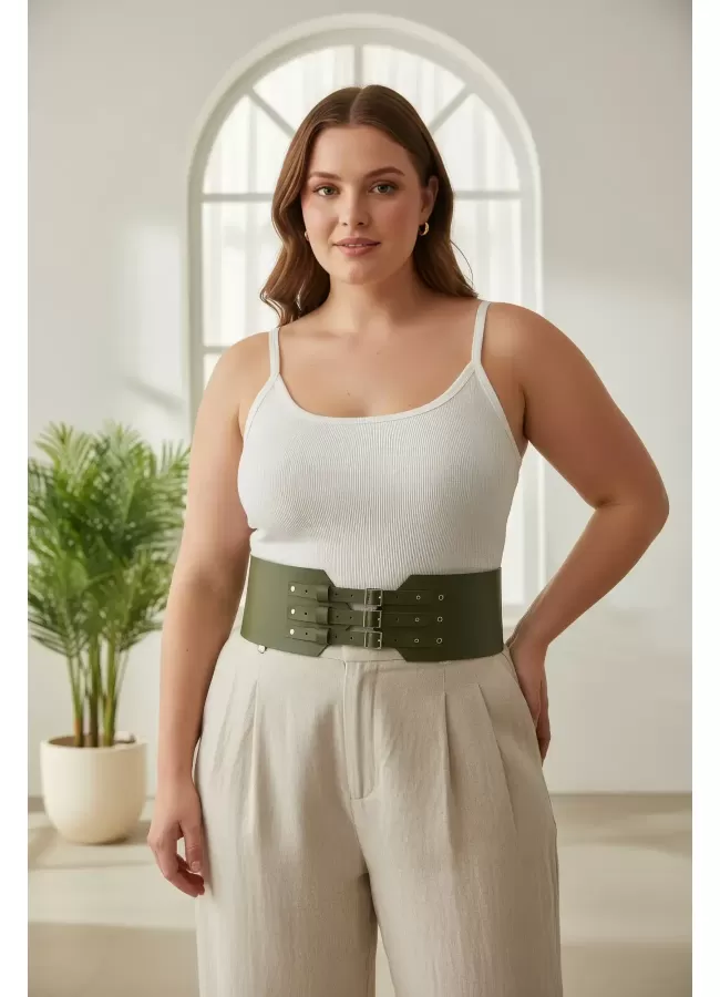 Büyük Beden Taba Kadın Korse Kemer Omuz Askılı Bağcık Detaylı - APFT1429