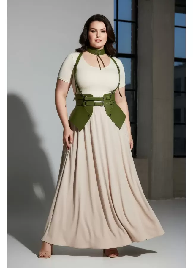 Büyük Beden Taba Kadın Korse Kemer Omuz Askılı Bağcık Detaylı - APFT1429
