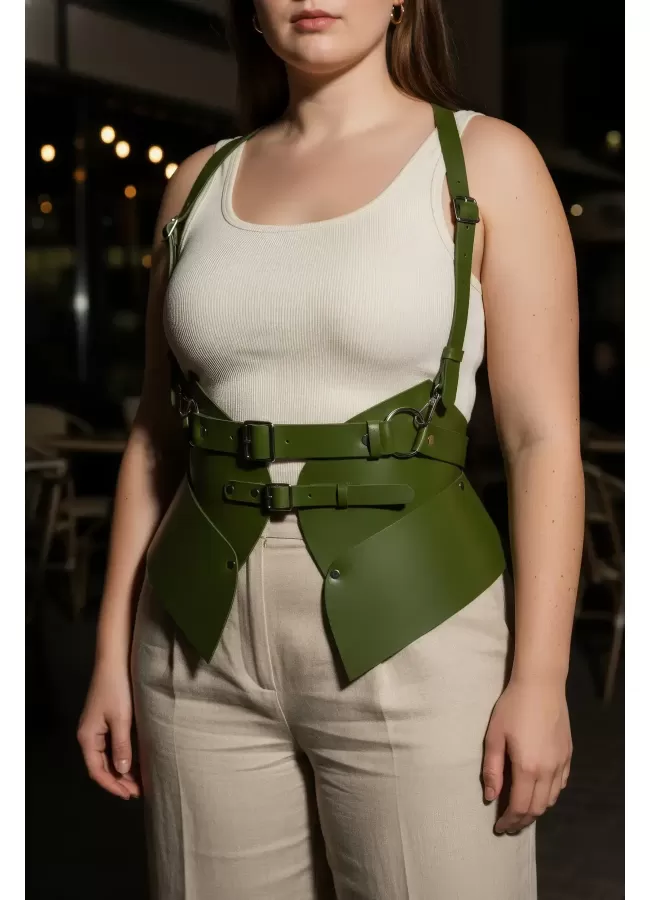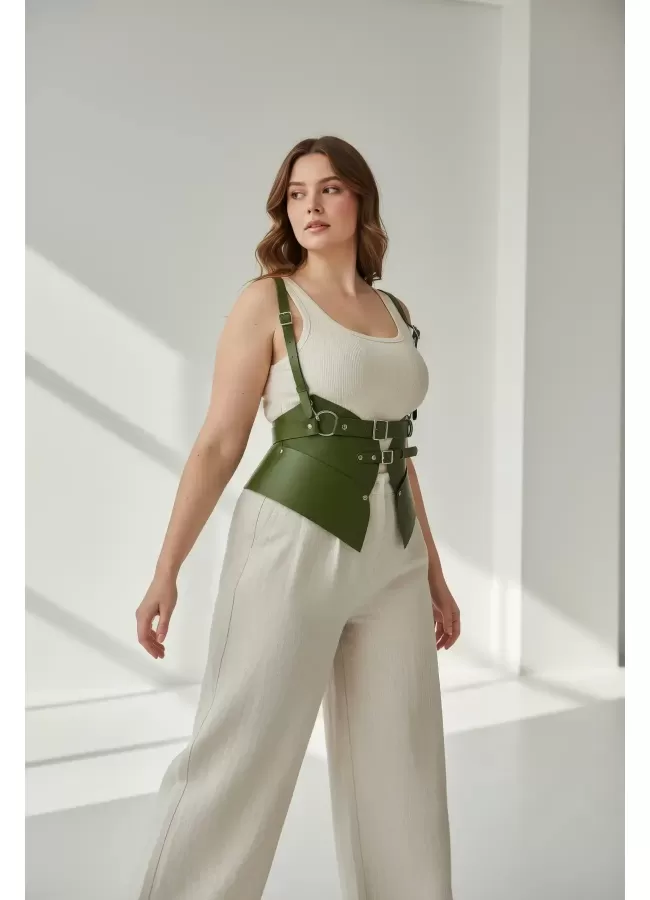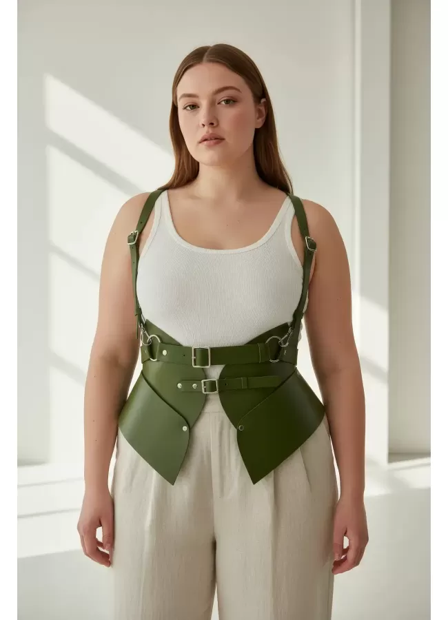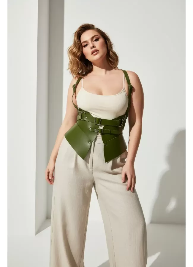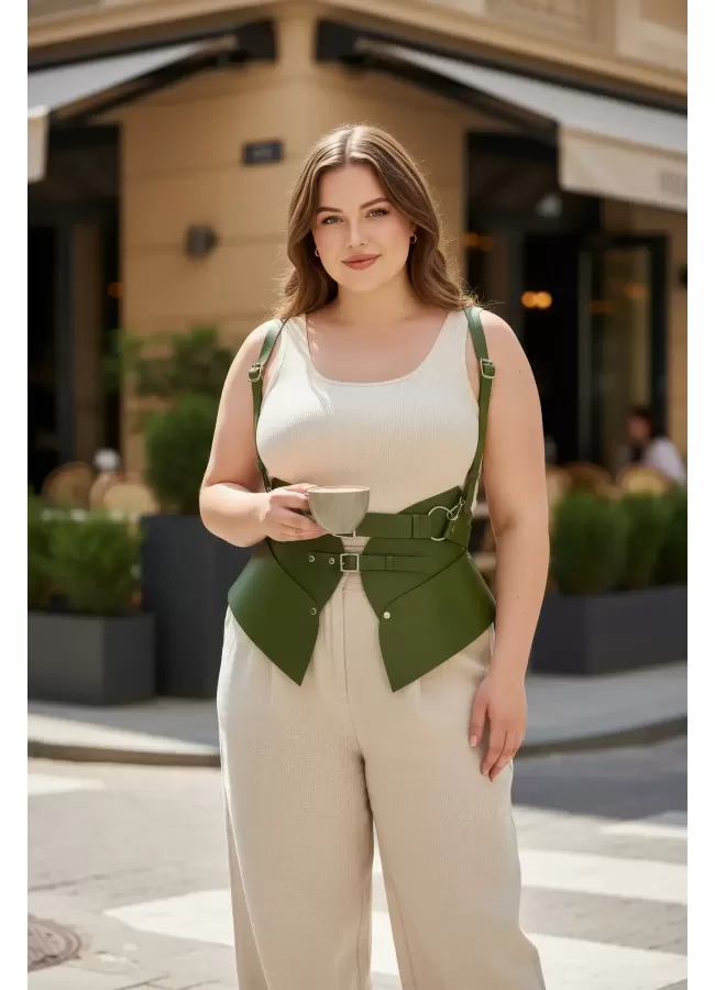 Büyük Beden Haki Kadın Kemer Omuz Askılı Korse Tarzı Bel Şekillendirici - APFT616