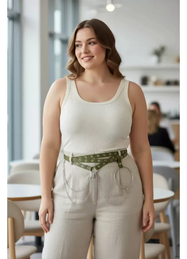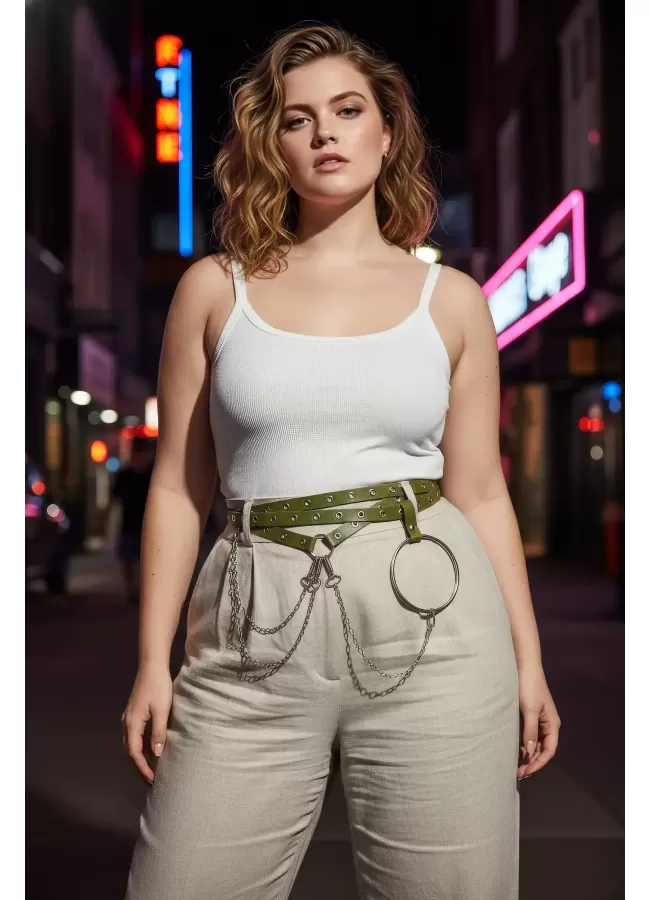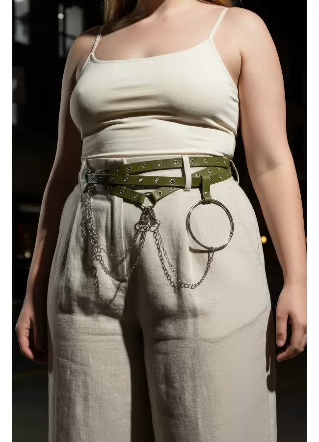 Büyük Beden Kırmızı Kadın Kemer Deri Harness Zincir Detaylı Vücut Aksesuarı - APFT9