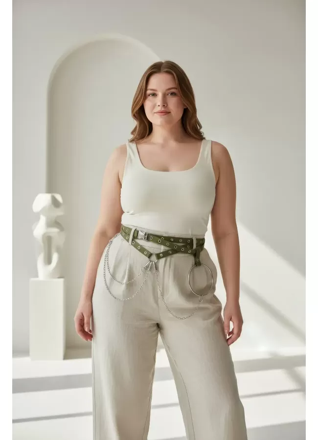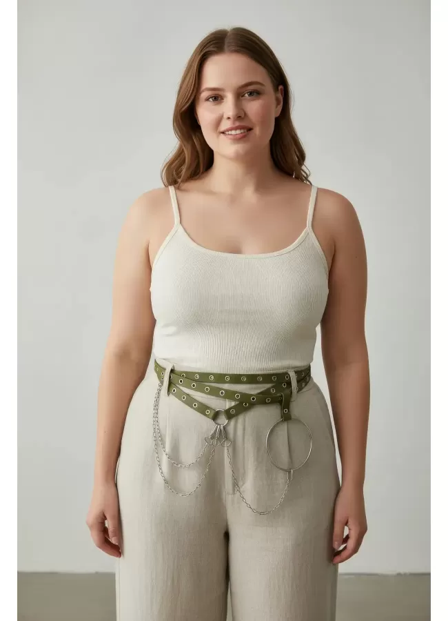 Büyük Beden Taba Kadın Korse Kemer Omuz Askılı Bağcık Detaylı - APFT1429