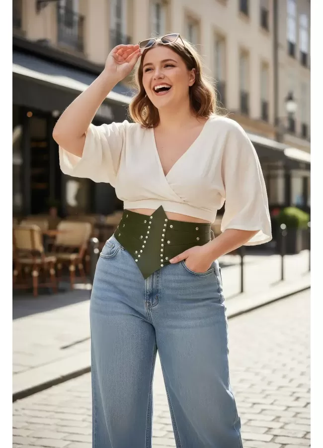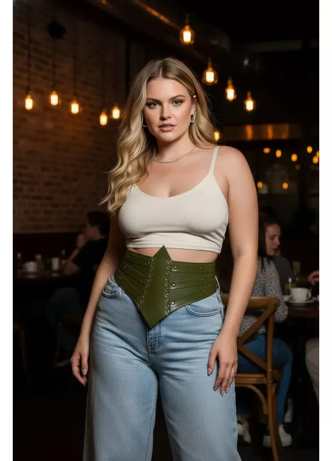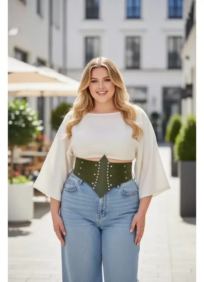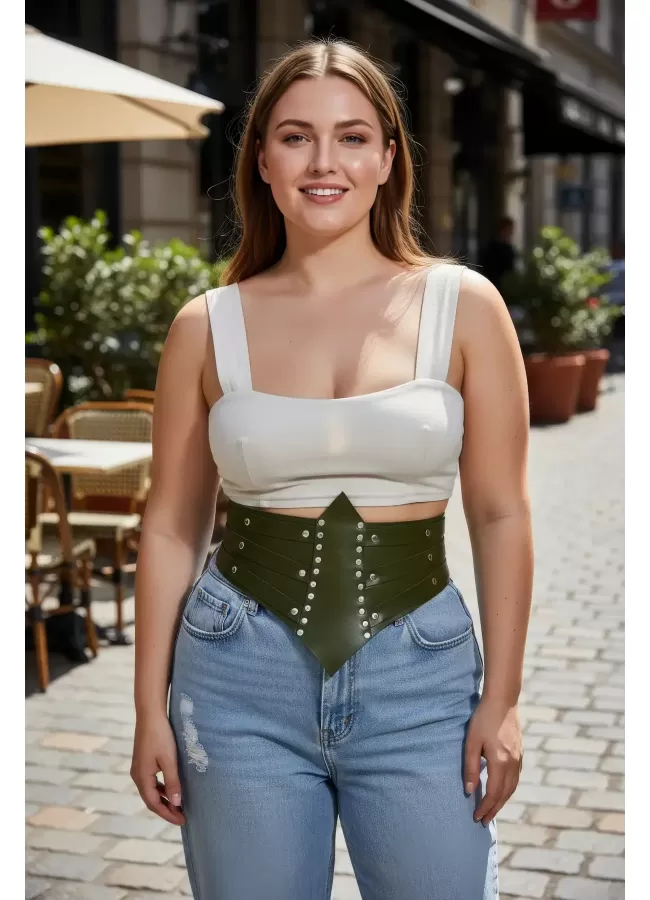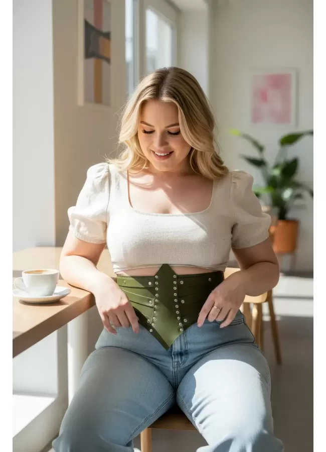 Büyük Beden Taba Kadın Korse Kemer Omuz Askılı Bağcık Detaylı - APFT1429