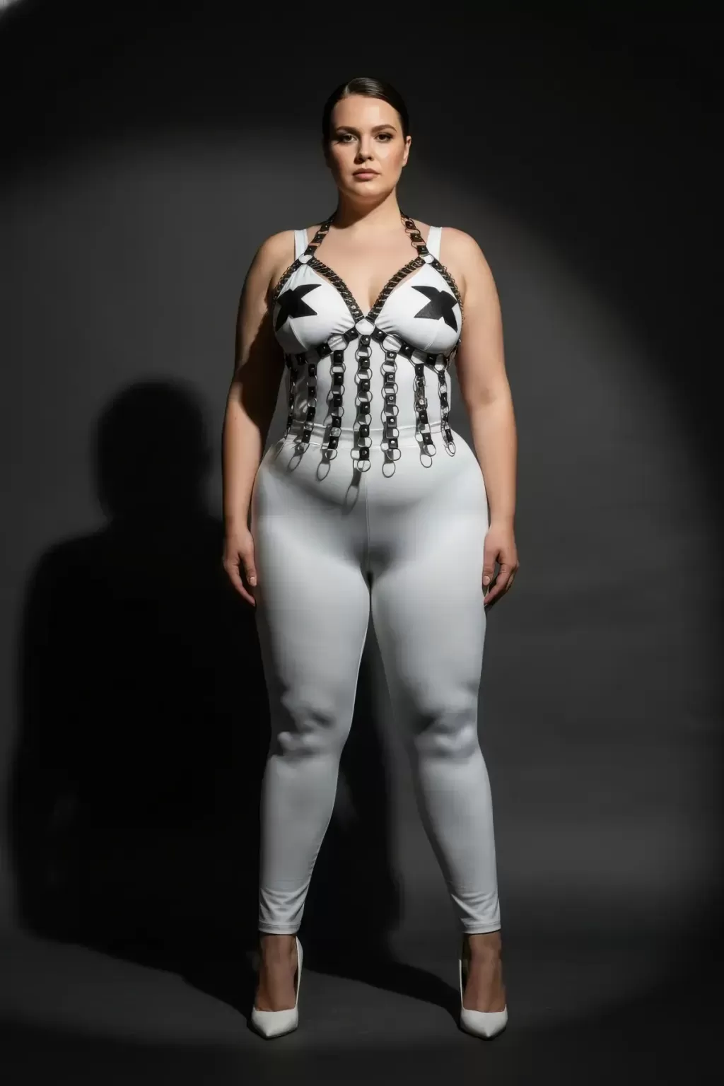 Büyük Beden Kadın Göğüs Harness Lastik, Şık ve Halka Detaylı - APFT567