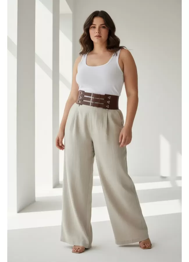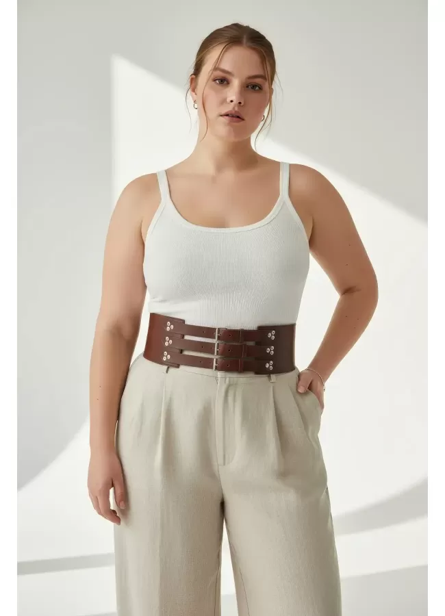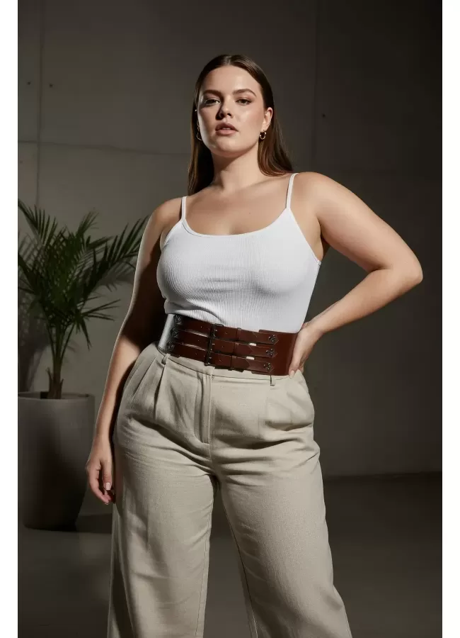 Büyük Beden Taba Kadın Korse Kemer Omuz Askılı Bağcık Detaylı - APFT1429