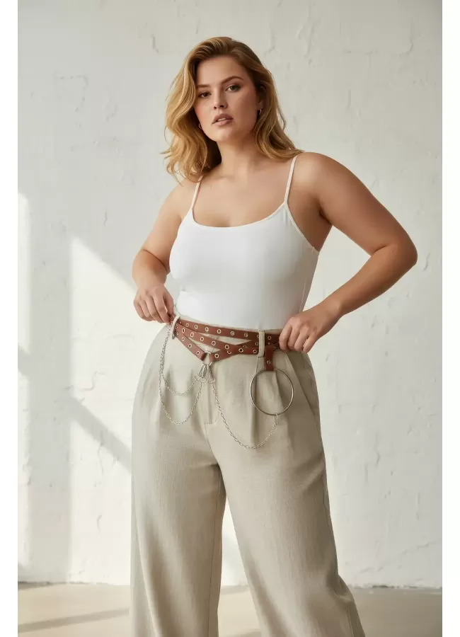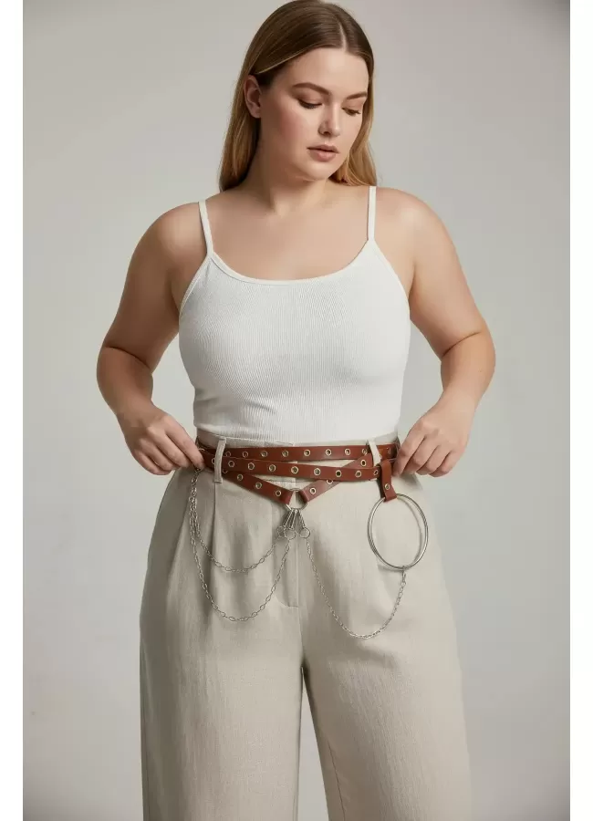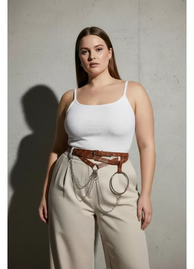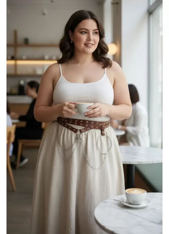 Büyük Beden Taba Kadın Korse Kemer Omuz Askılı Bağcık Detaylı - APFT1429