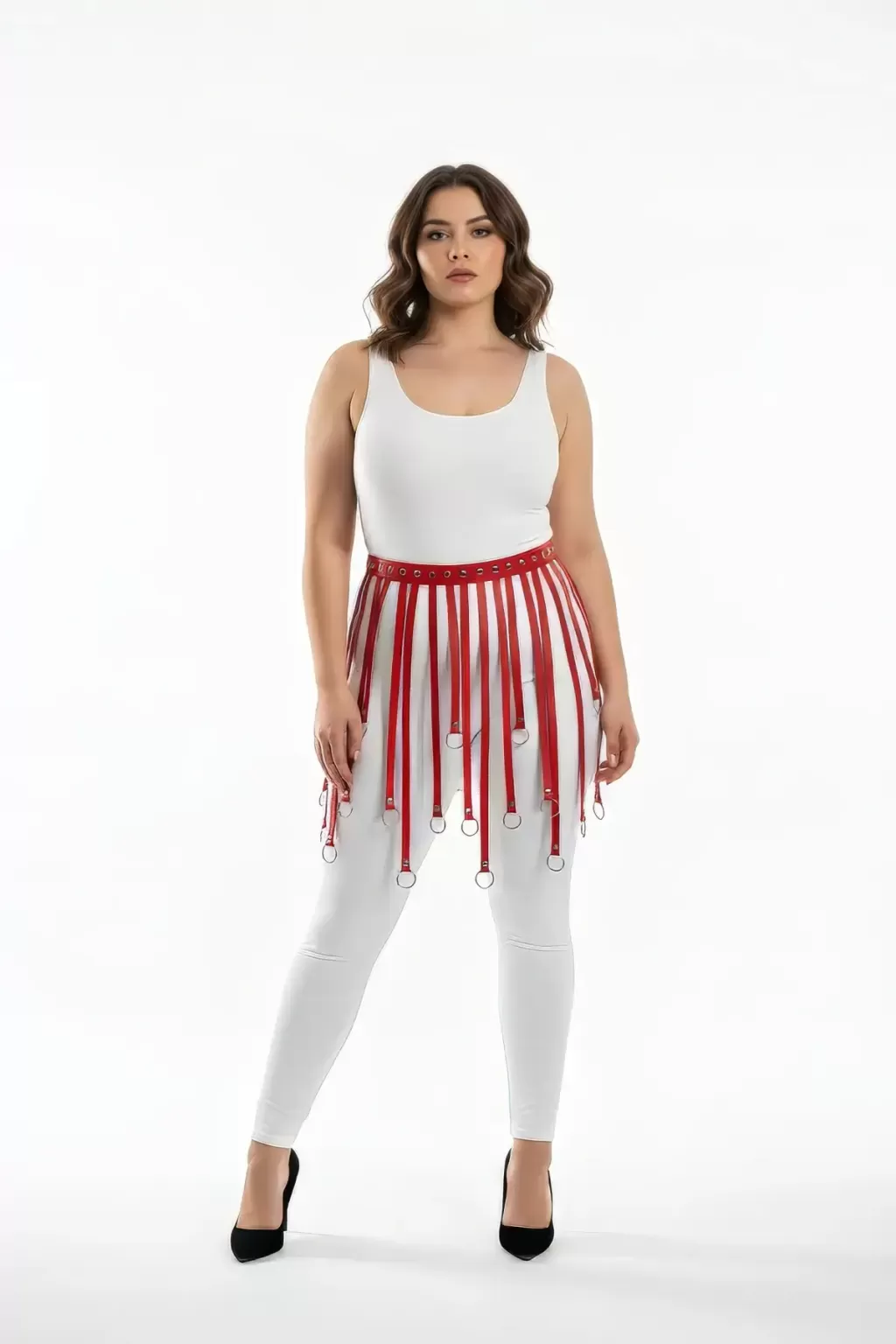 Büyük Beden Kırmızı Deri Etek Askılı Halka Detaylı Kemer - APFT579