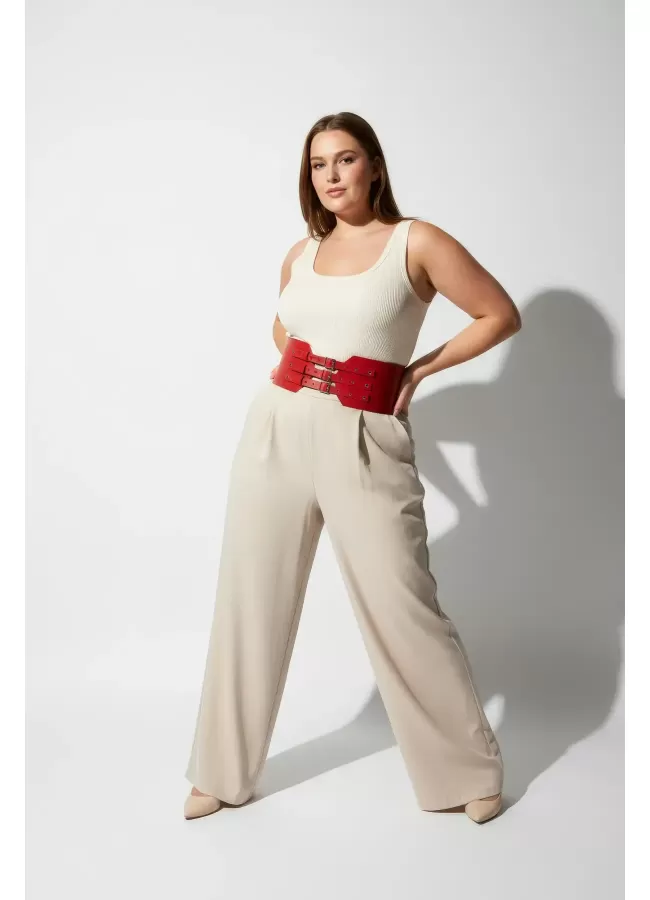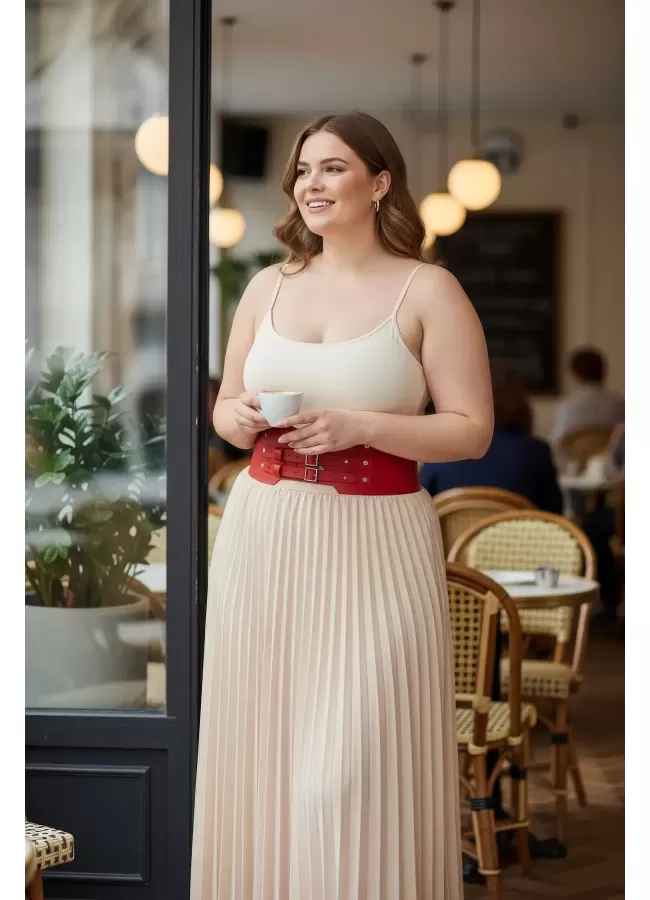 Büyük Beden Taba Kadın Korse Kemer Omuz Askılı Bağcık Detaylı - APFT1429