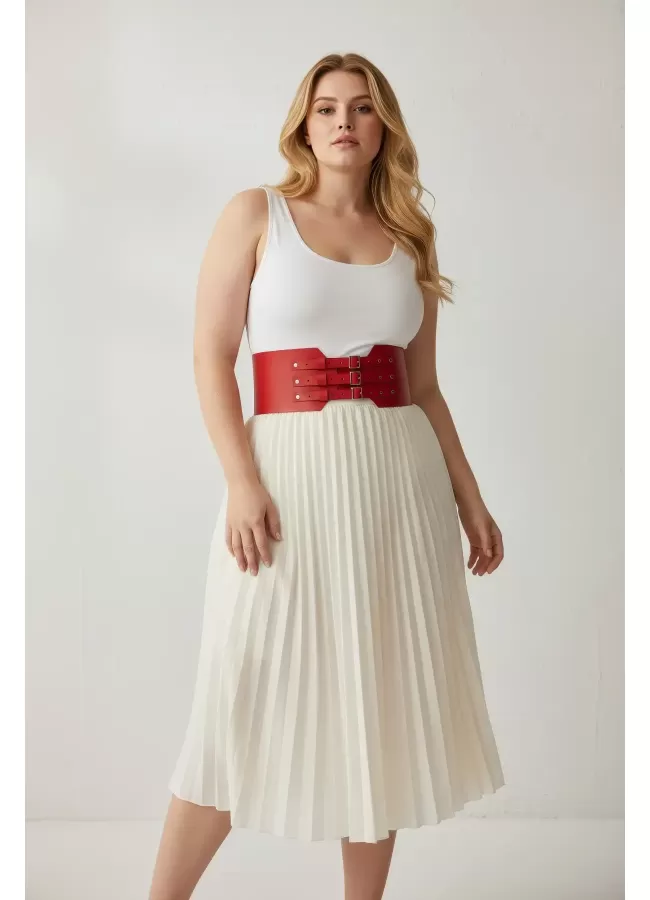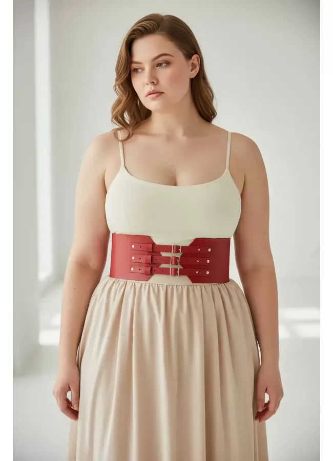 Büyük Beden Kırmızı Kadın Kemer Deri Harness Zincir Detaylı Vücut Aksesuarı - APFT9