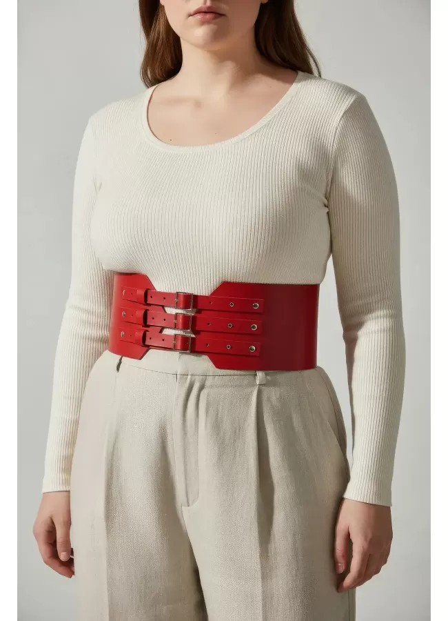 Kırmızı Tasarım Tasmalı Deri Jartiyer Takım