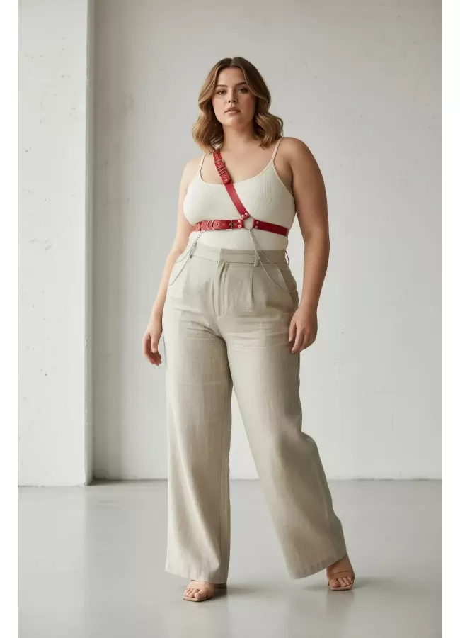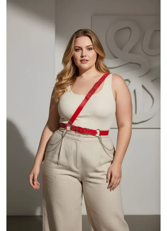 Büyük Beden Kırmızı Kadın Kemer Deri Harness Zincir Detaylı Vücut Aksesuarı - APFT9