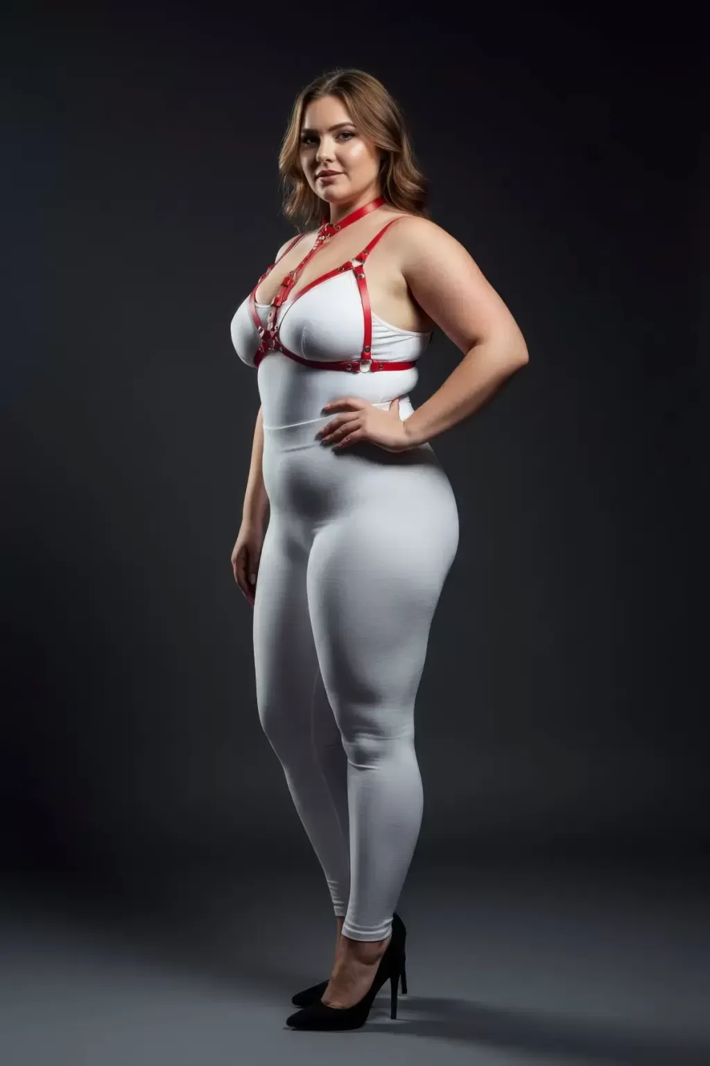 Büyük Beden Kırmızı Kadın Deri Harness Takım Seksi Vücut Aksesuarı - APFT197