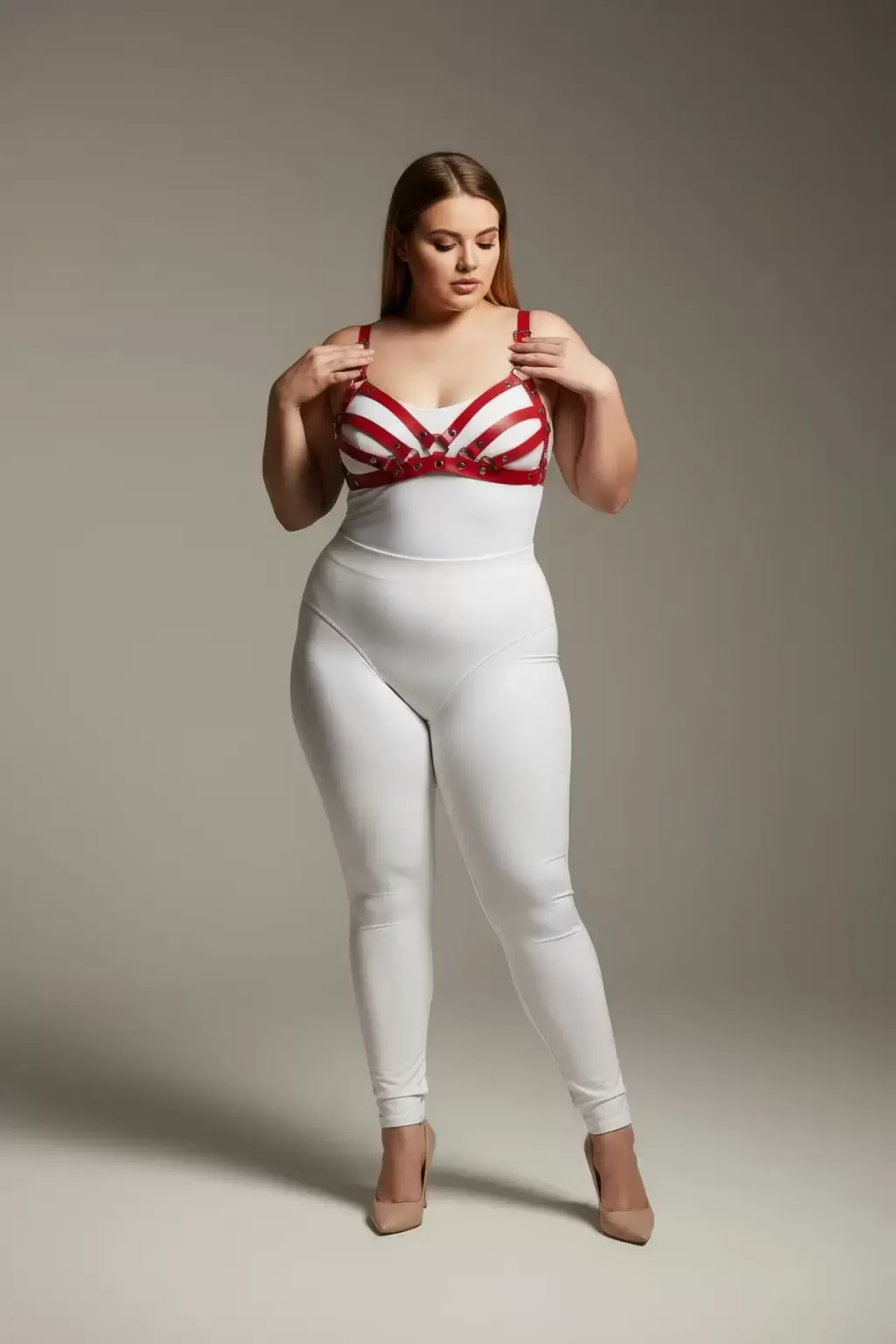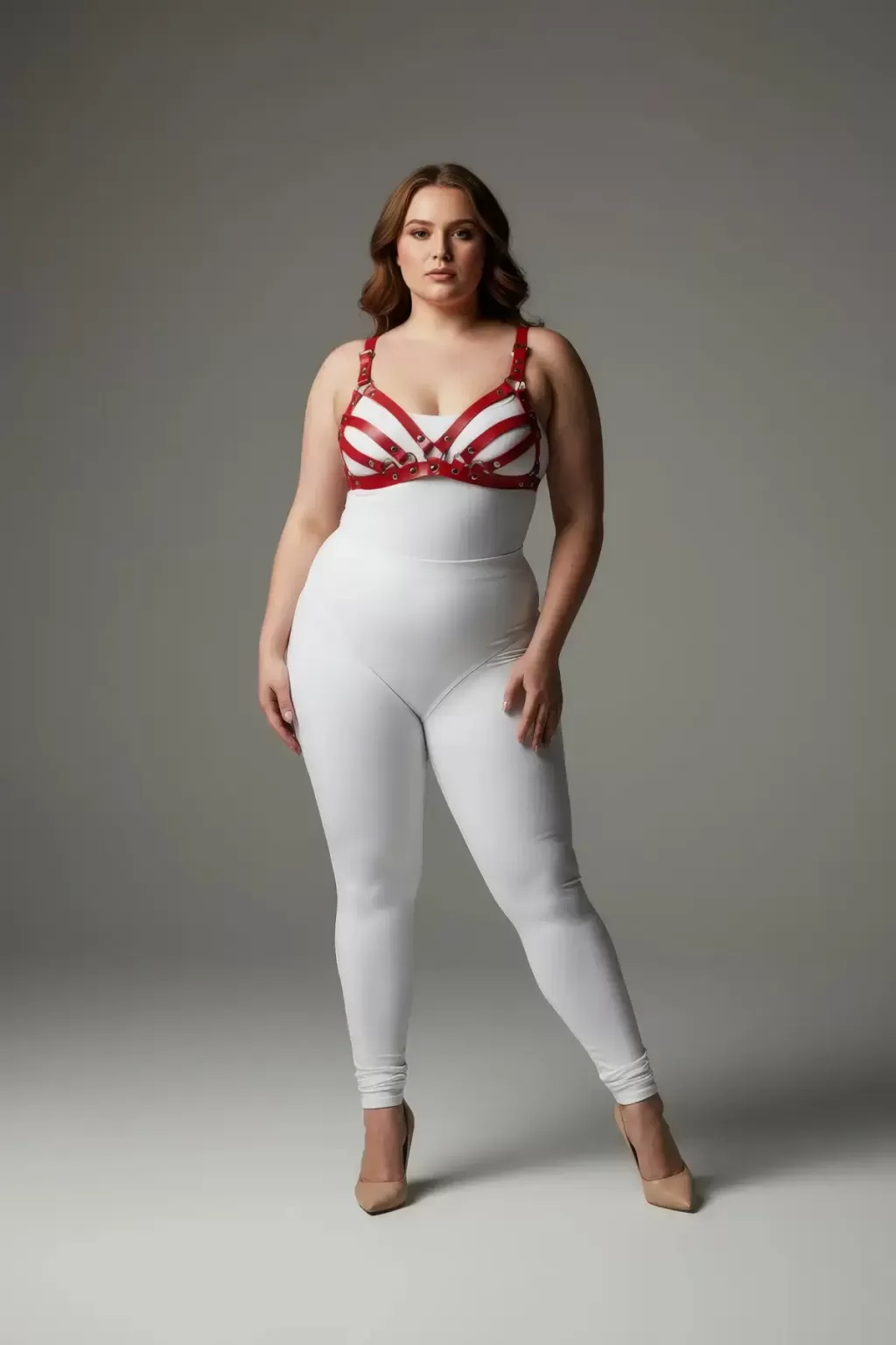 Büyük Beden Kırmızı Kadın Deri Sütyen Harness Takım Şık Fantazi Aksesuar - APFT733