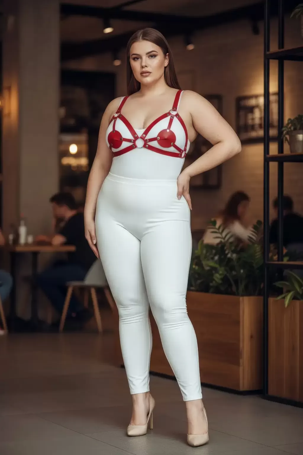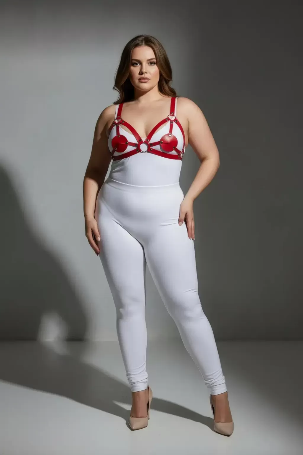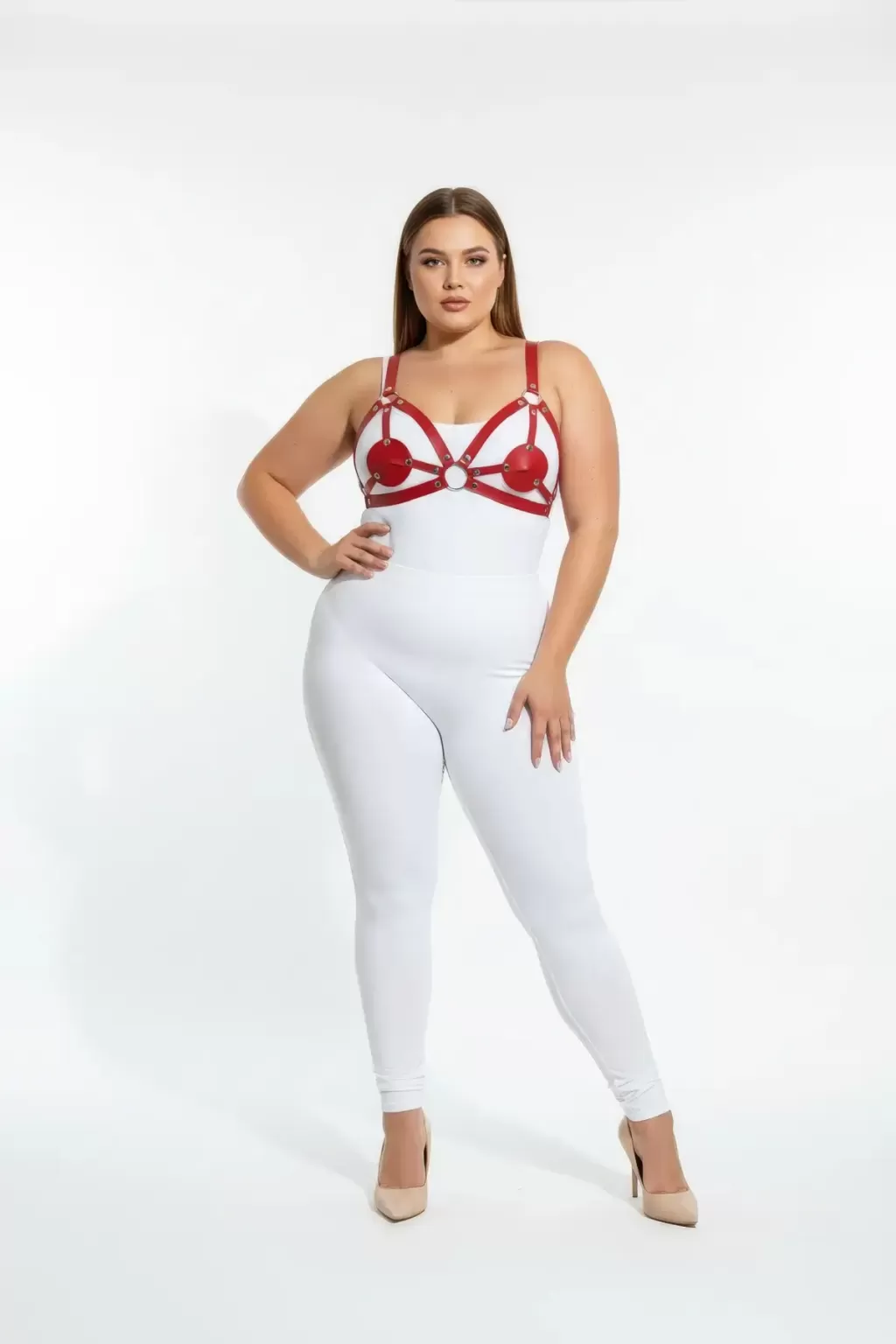Büyük Beden Kırmızı Kadın Harness Takım Deri Halka Detaylı Fantezi Aksesuar - APFT112