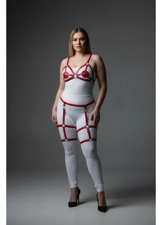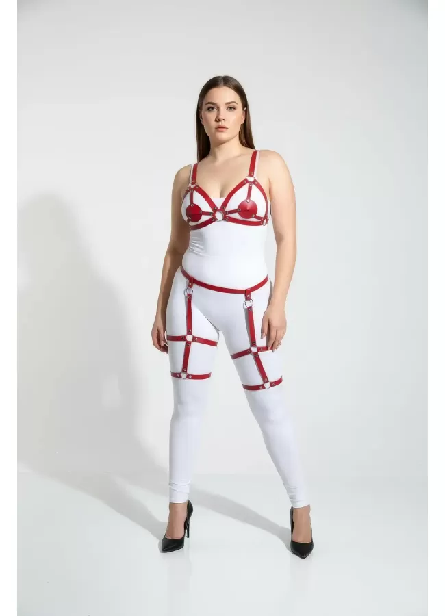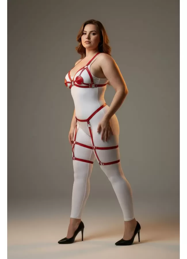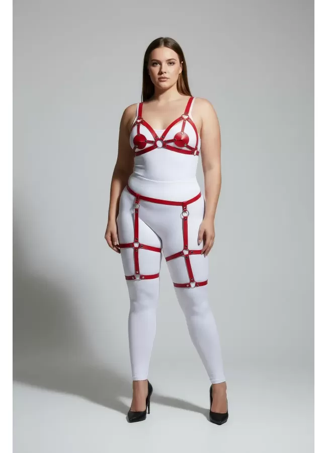 Büyük Beden Kırmızı Kadın Jartiyer Harness Deri Fantazi Giyim Takımı - APFT285