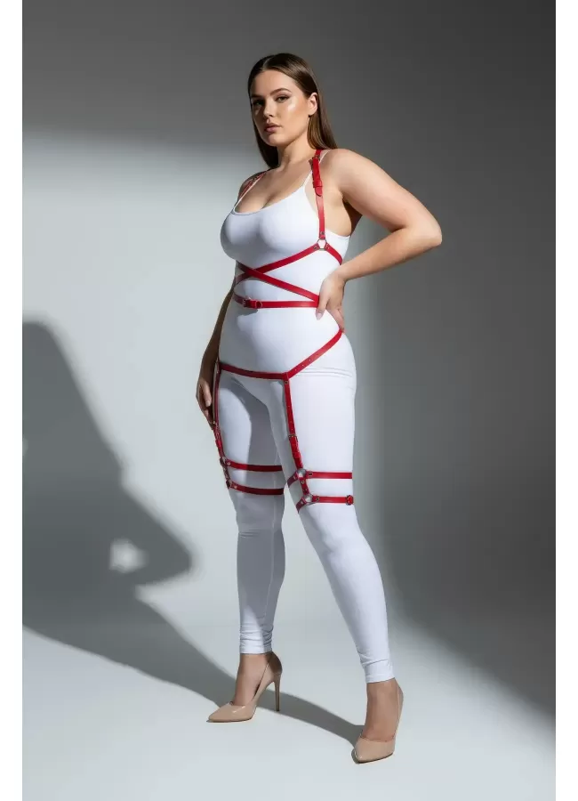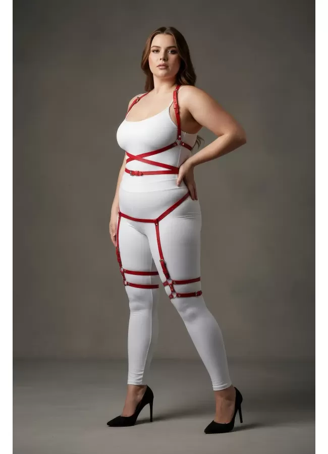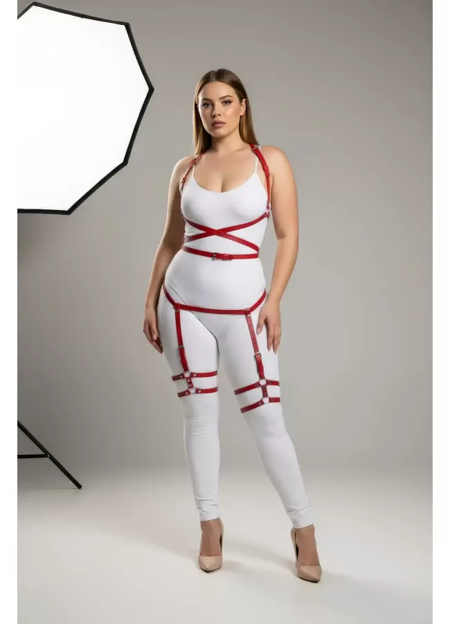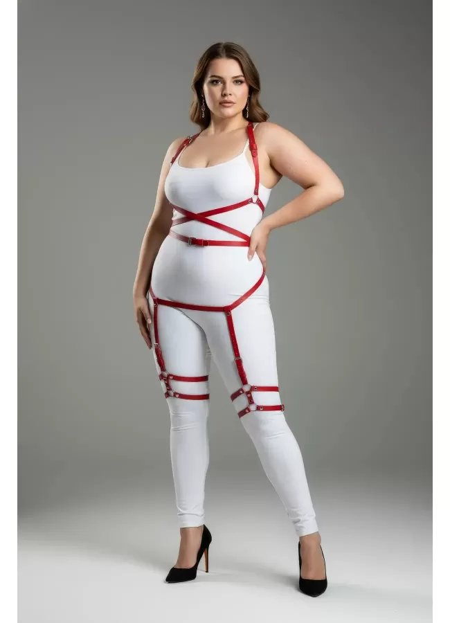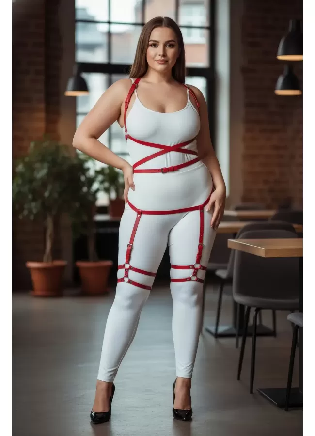 Büyük Beden Kırmızı Kadın Jartiyer Harness Deri Fantazi Vücut Takımı - APFT274