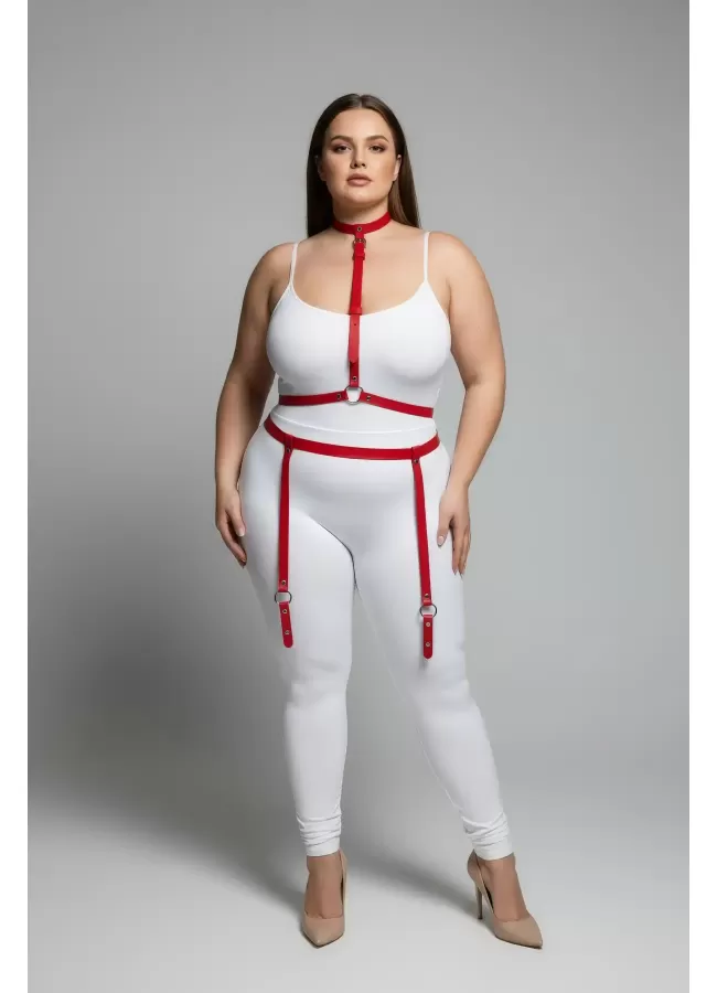 Büyük Beden Kırmızı Kadın Jartiyer Harness Deri Vücut Aksesuarı - APFT230