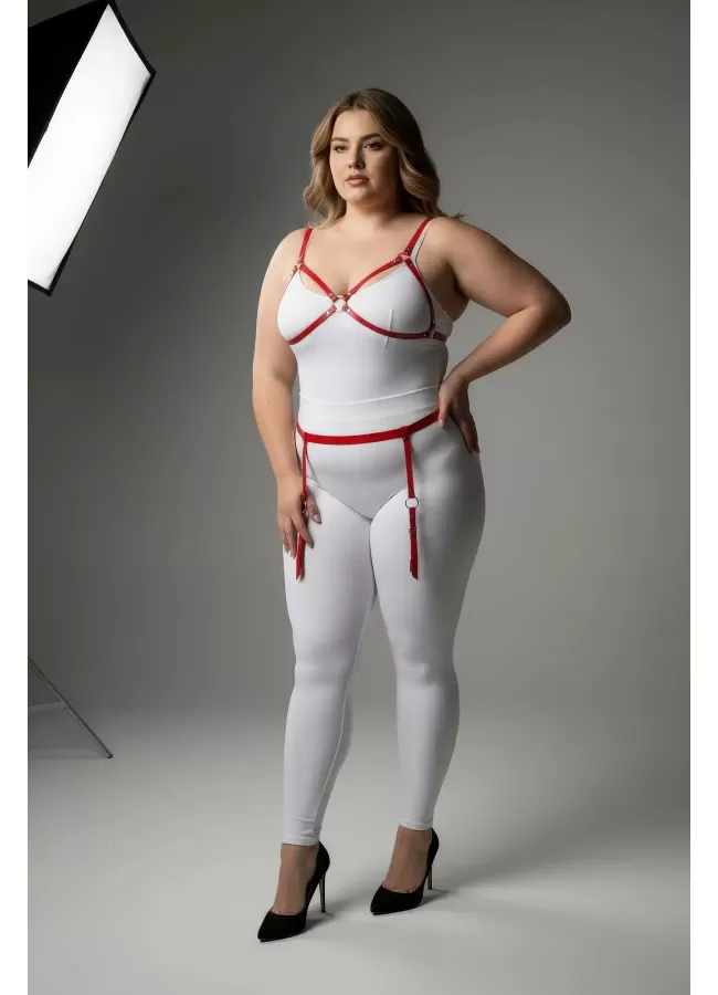 Büyük Beden Kırmızı Kadın Jartiyer Harness Tam Vücut Halka Detaylı Fantazi Aksesuar - APFT568