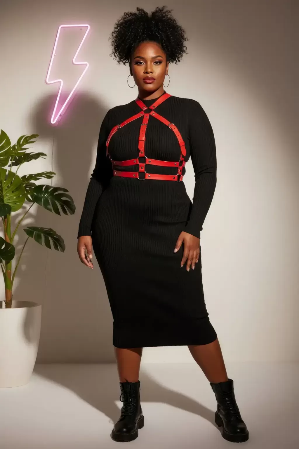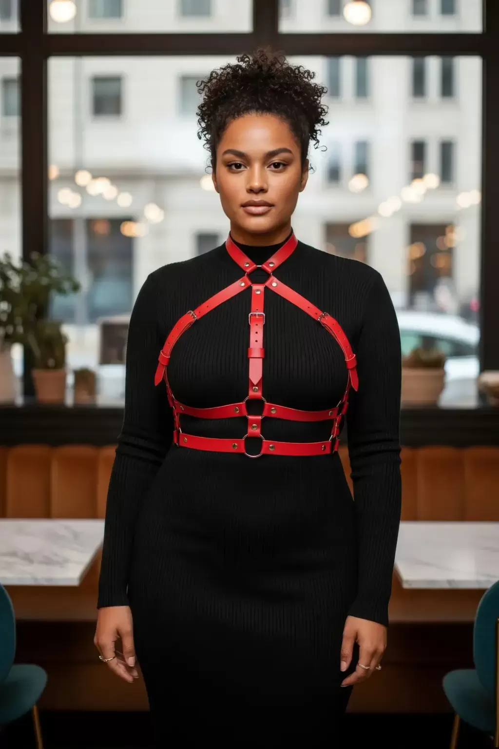Büyük Beden Kırmızı Kadın Kemer Ayarlanabilir Deri Harness Vücut Aksesuarı - APFT218