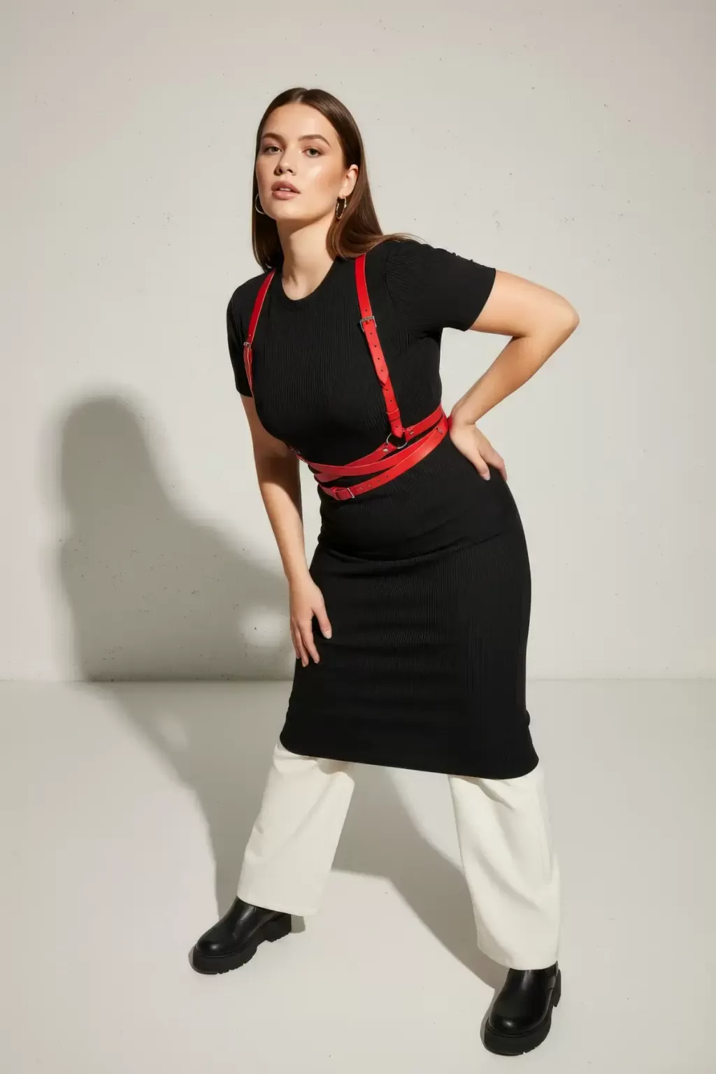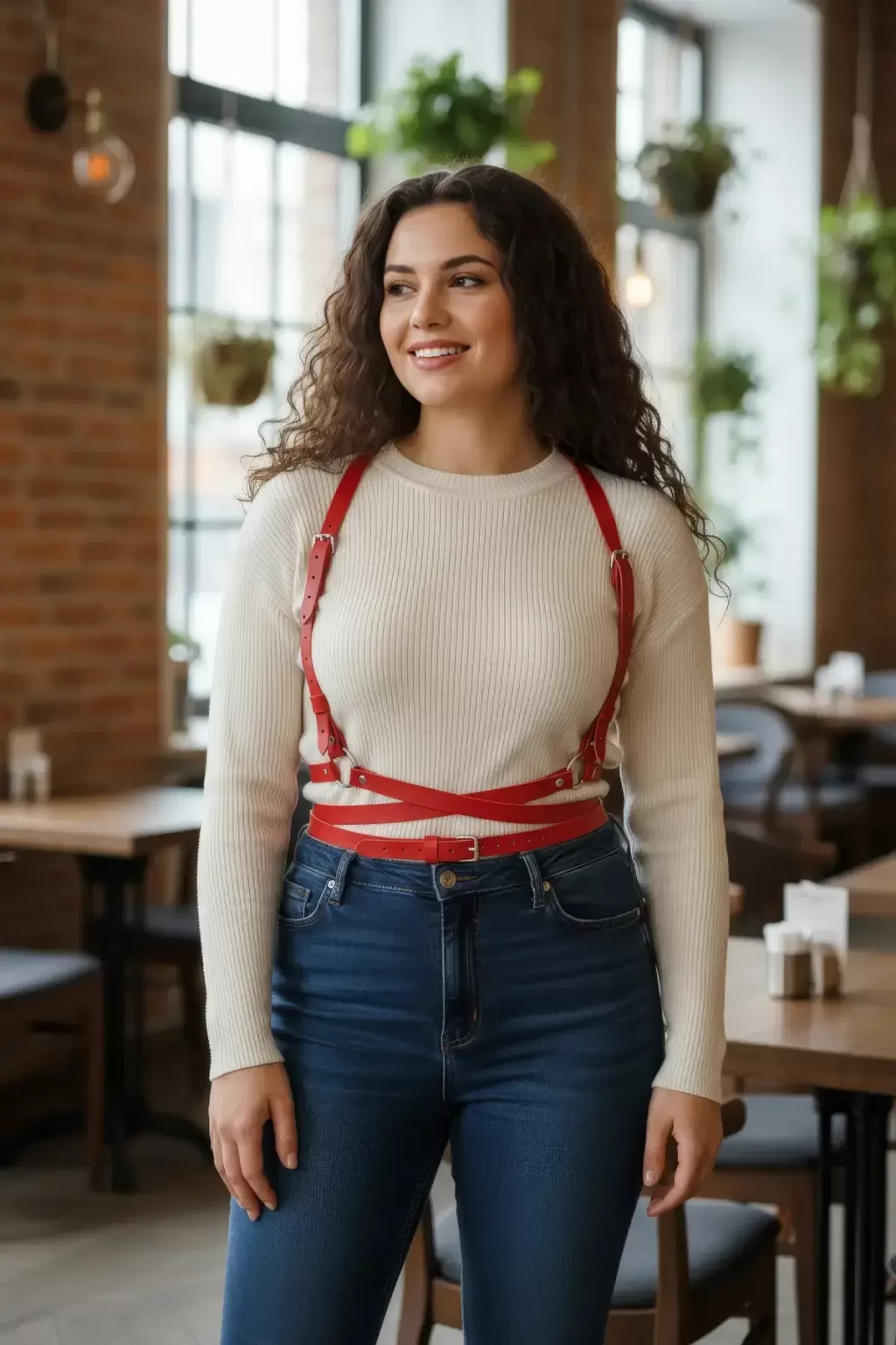 Büyük Beden Kırmızı Kadın Kemer Deri Harness Vücut Aksesuarı - APFT198