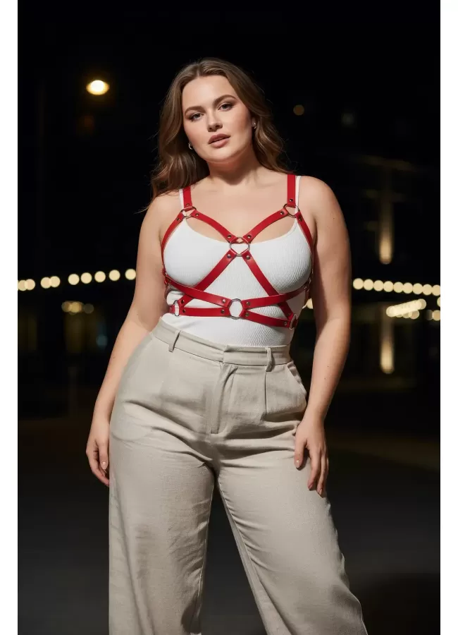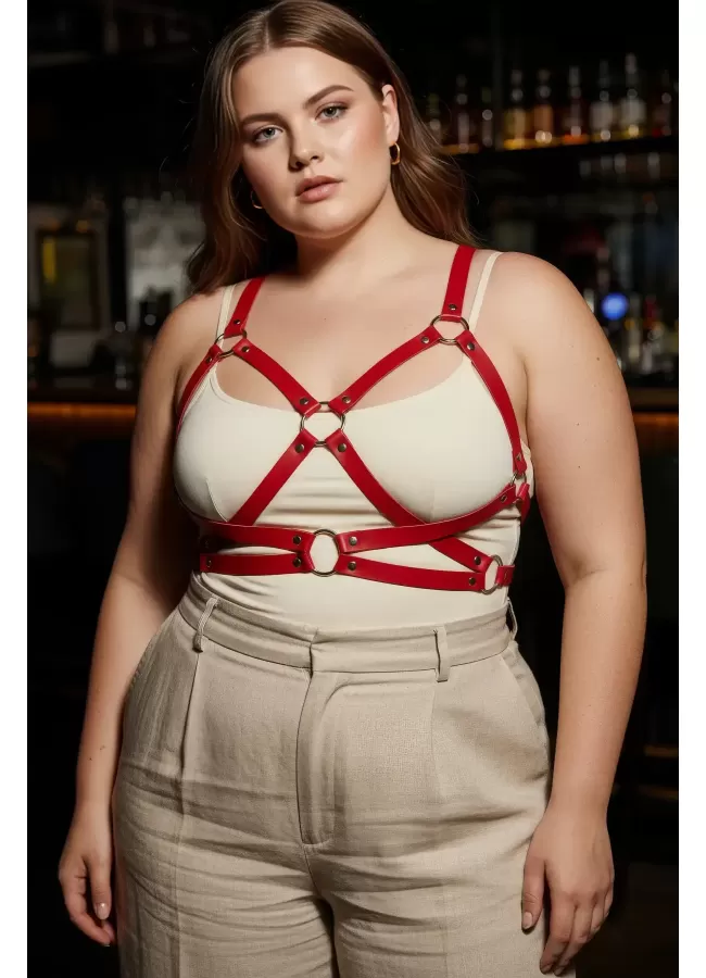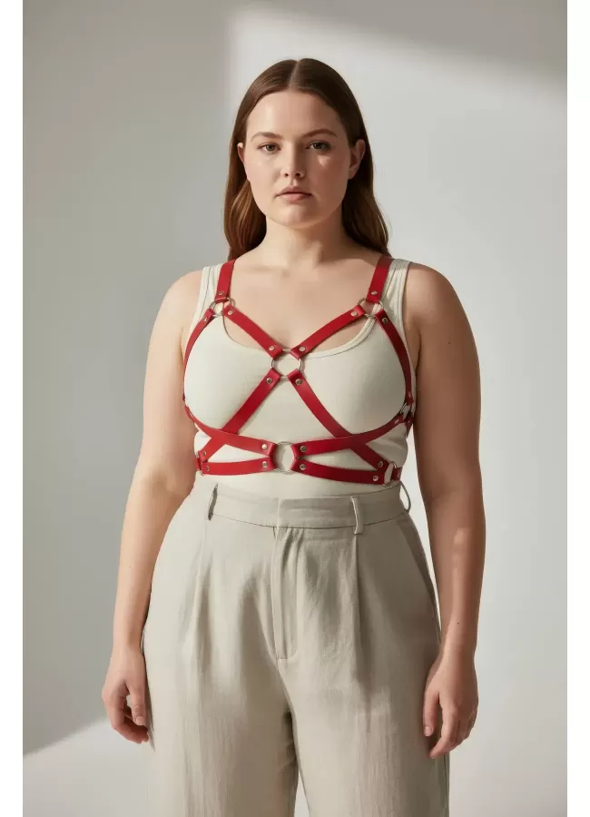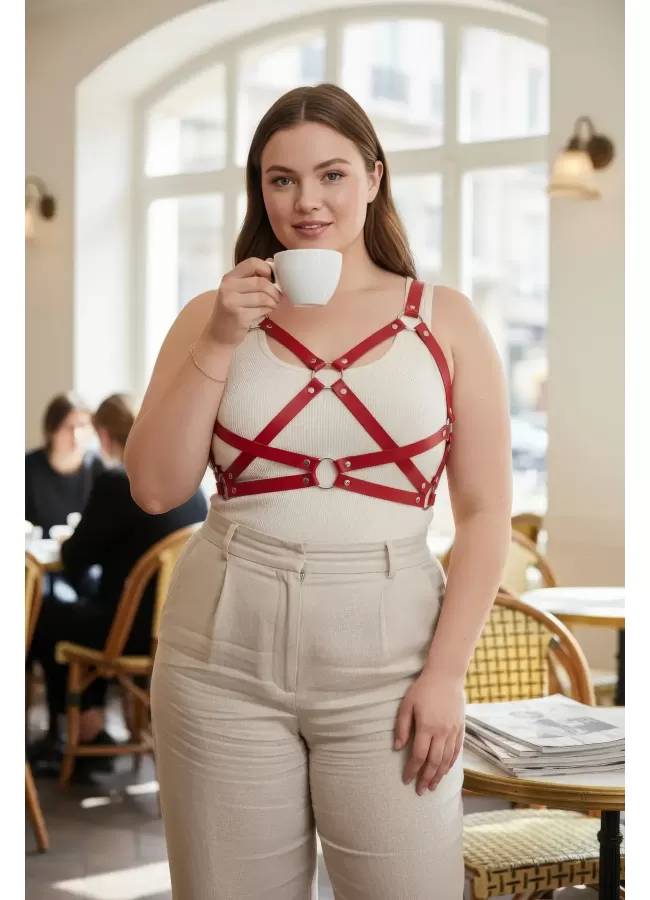 Büyük Beden Kırmızı Kadın Kemer Deri Korse Detaylı Vücut Aksesuarı - APFT816
