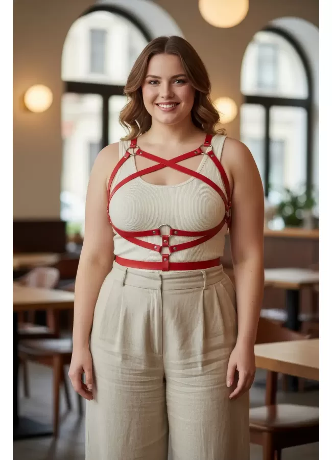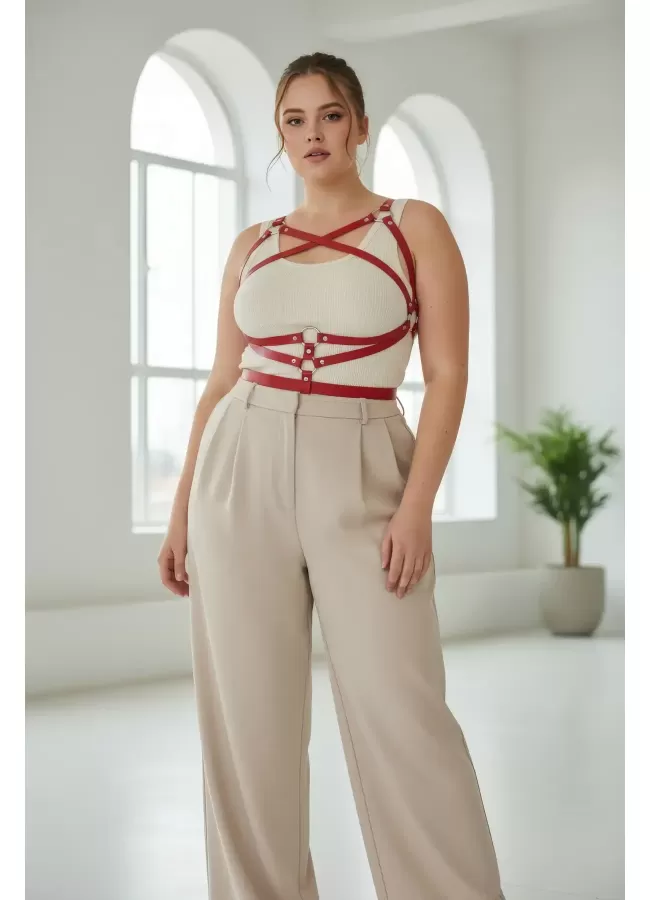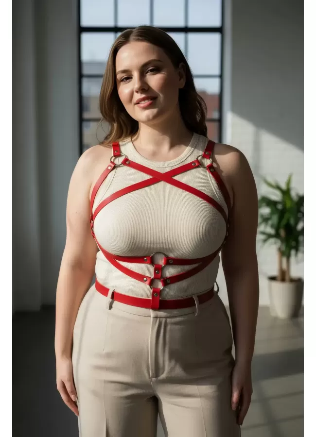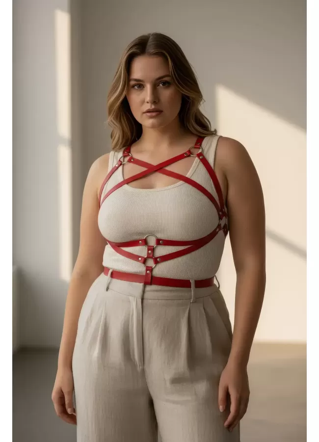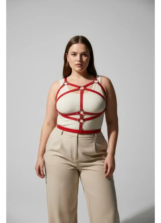 Büyük Beden Kırmızı Kadın Kemer Deri Vücut Aksesuarı Korse Detaylı - APFT991