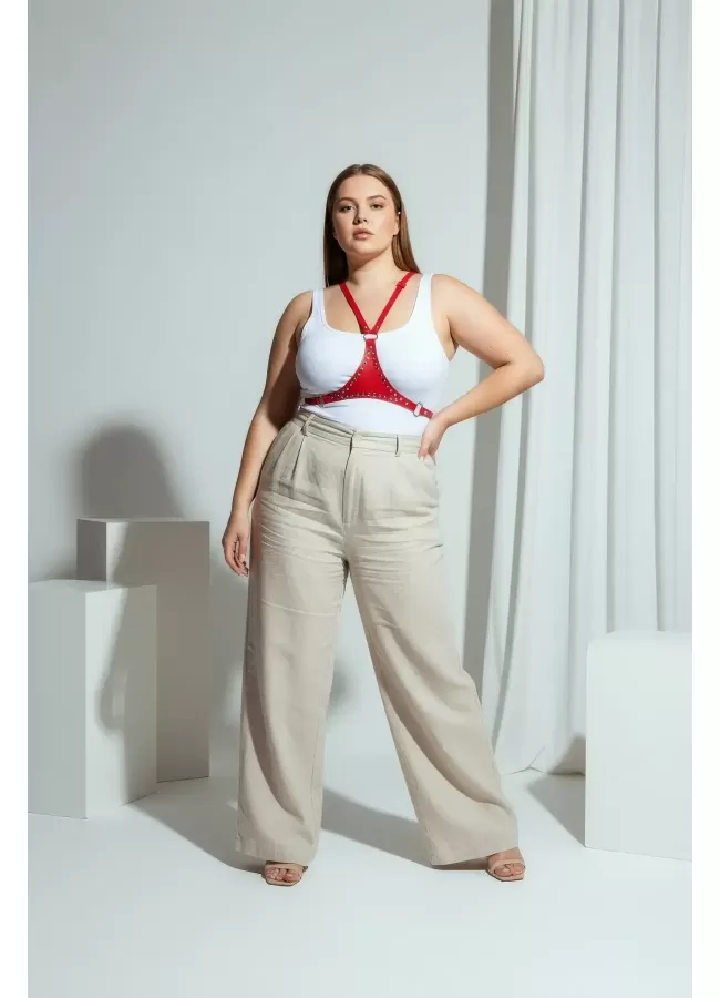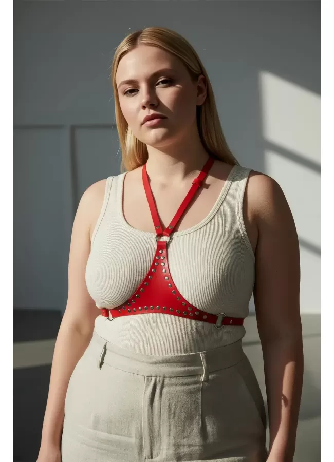 Büyük Beden Kırmızı Kadın Kemer Deri Harness Zincir Detaylı Vücut Aksesuarı - APFT9