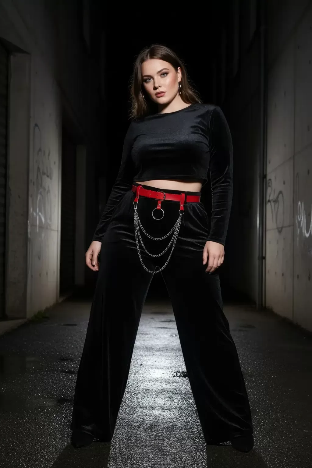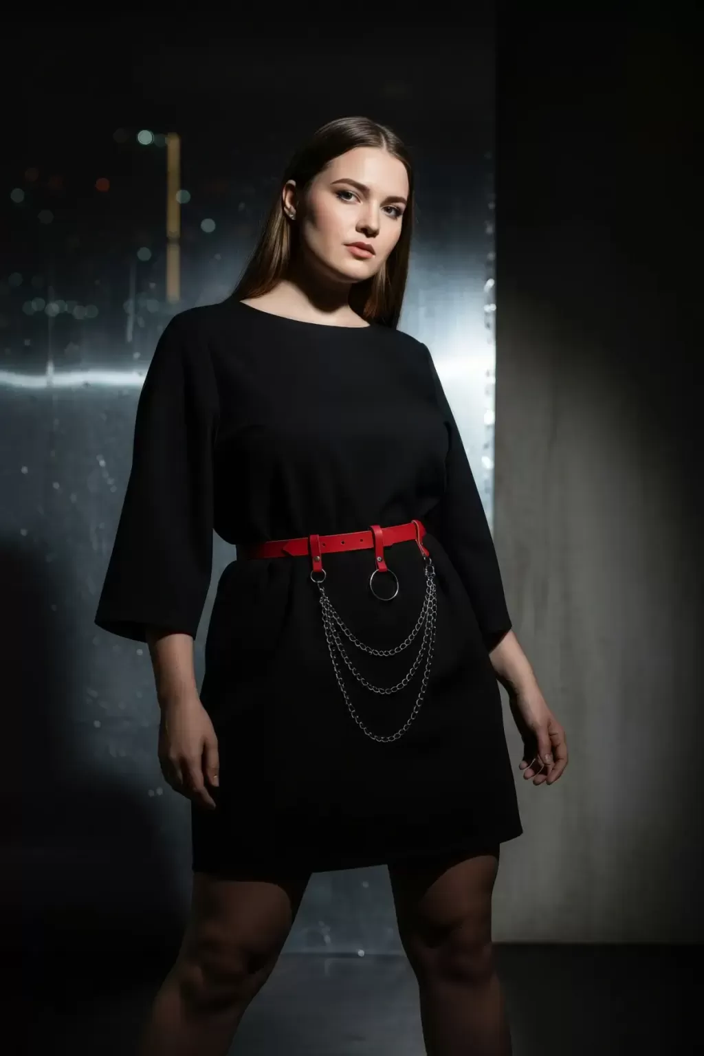 Büyük Beden Kırmızı Kadın Kemer Halka Tokalı Zincir Detaylı Deri Aksesuar - APFT484