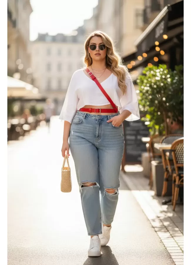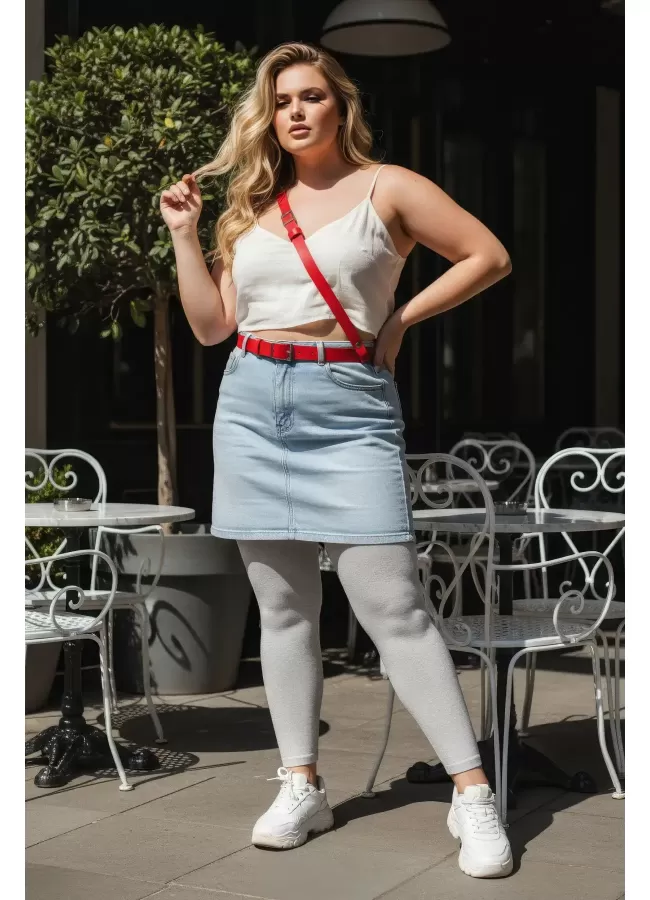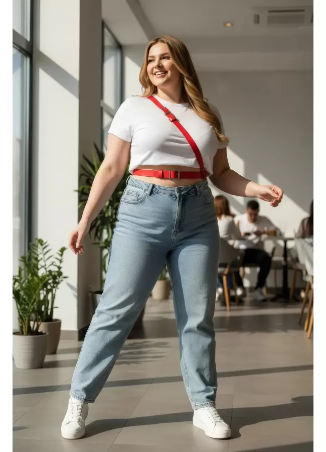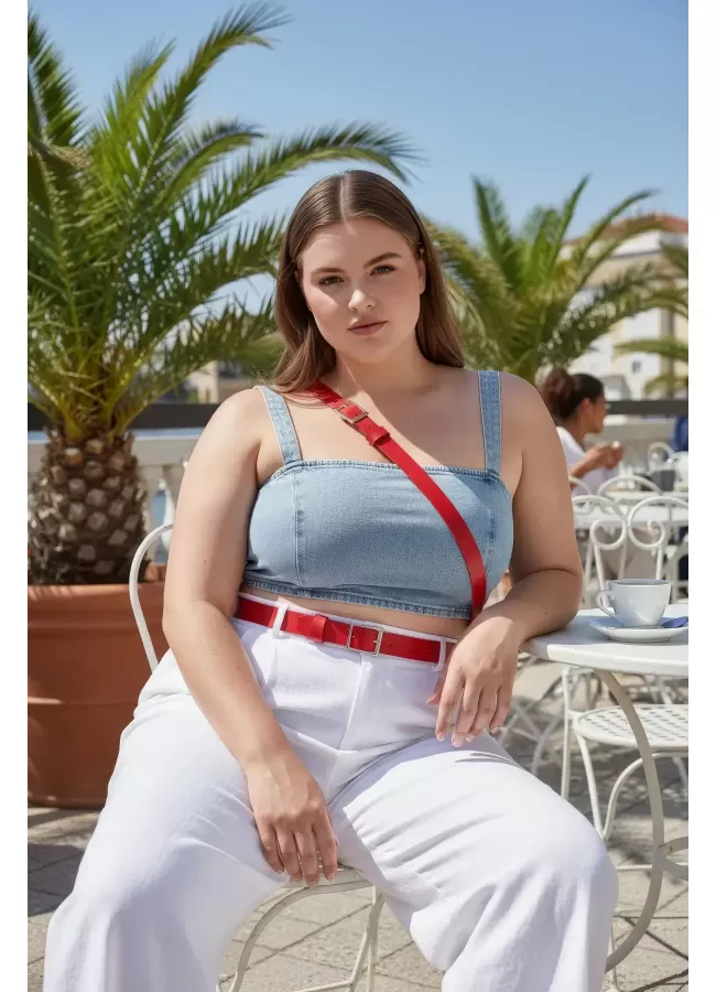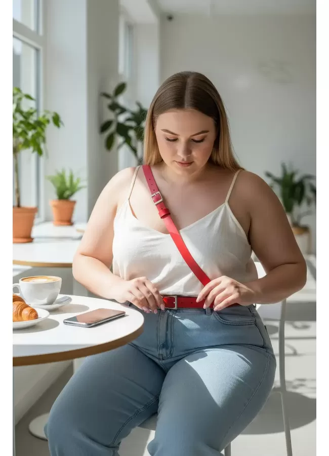 Büyük Beden Kırmızı Kadın Kemer Deri Harness Zincir Detaylı Vücut Aksesuarı - APFT9