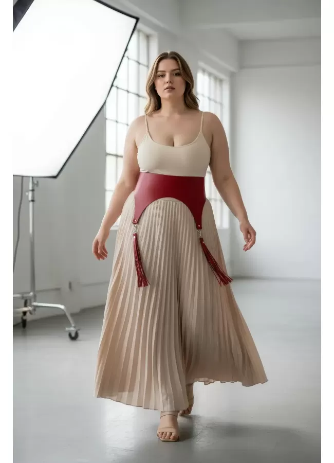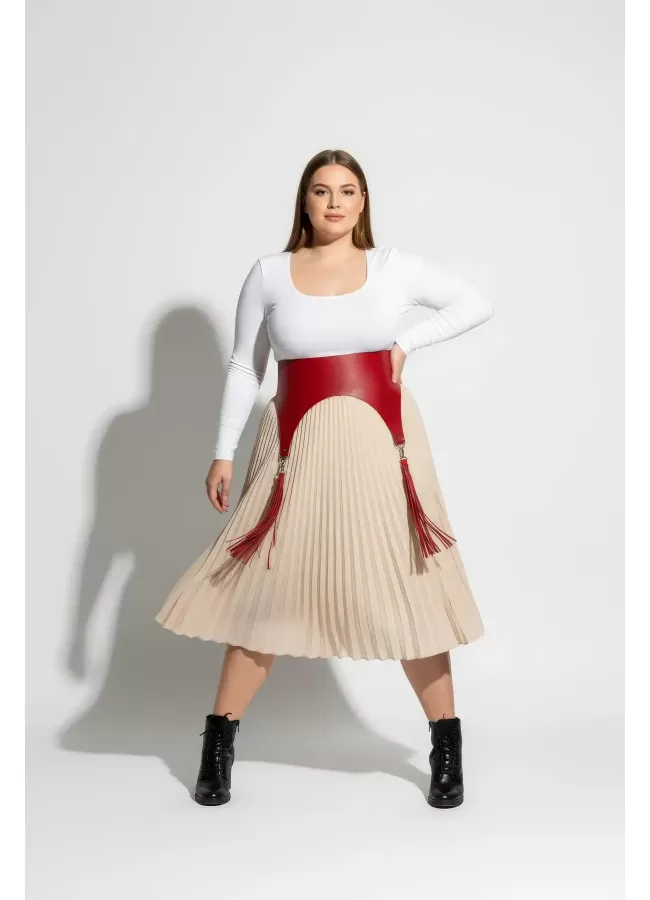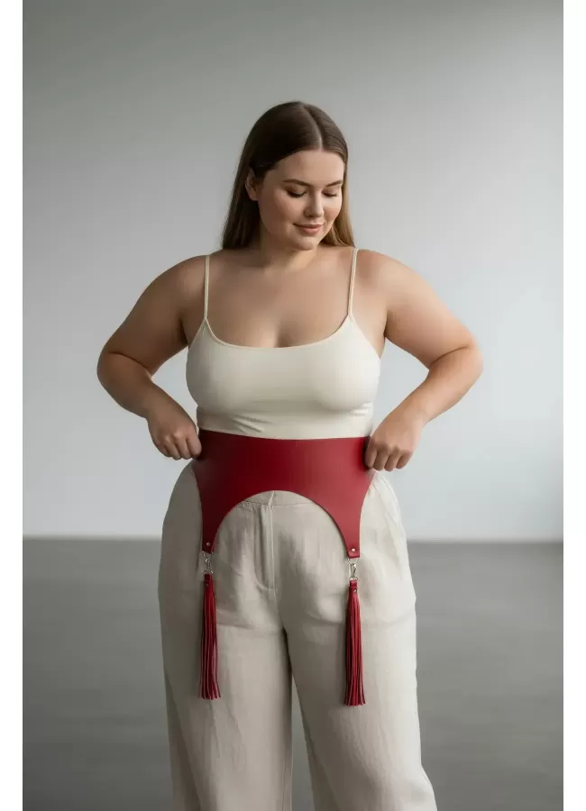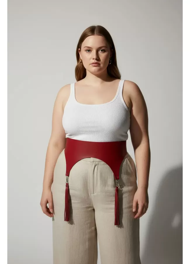 Büyük Beden Kırmızı Kadın Kemer Korsaj Model Püskül Detaylı - APFT788