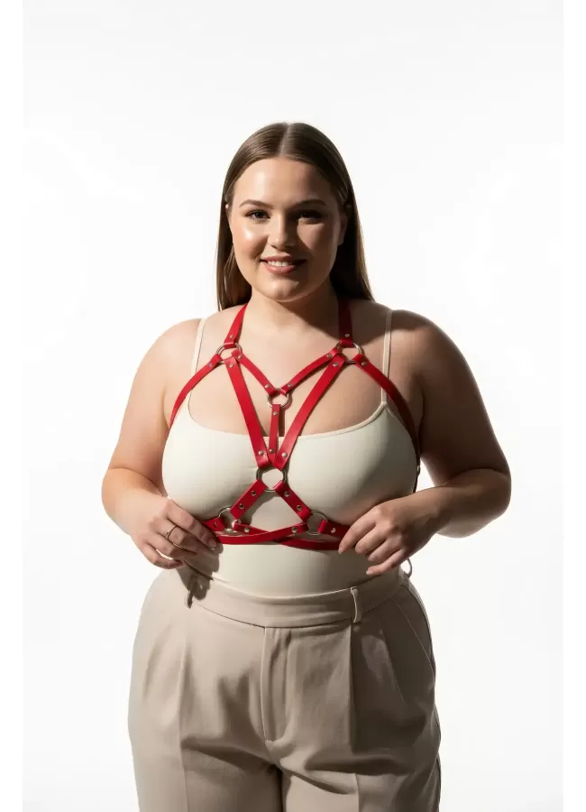 Büyük Beden Kırmızı Kadın Kemer Korse Tarzı Metal Halka Detaylı - APFT744