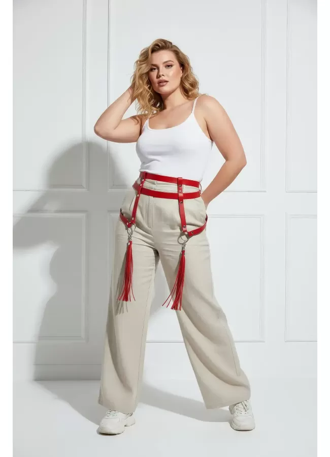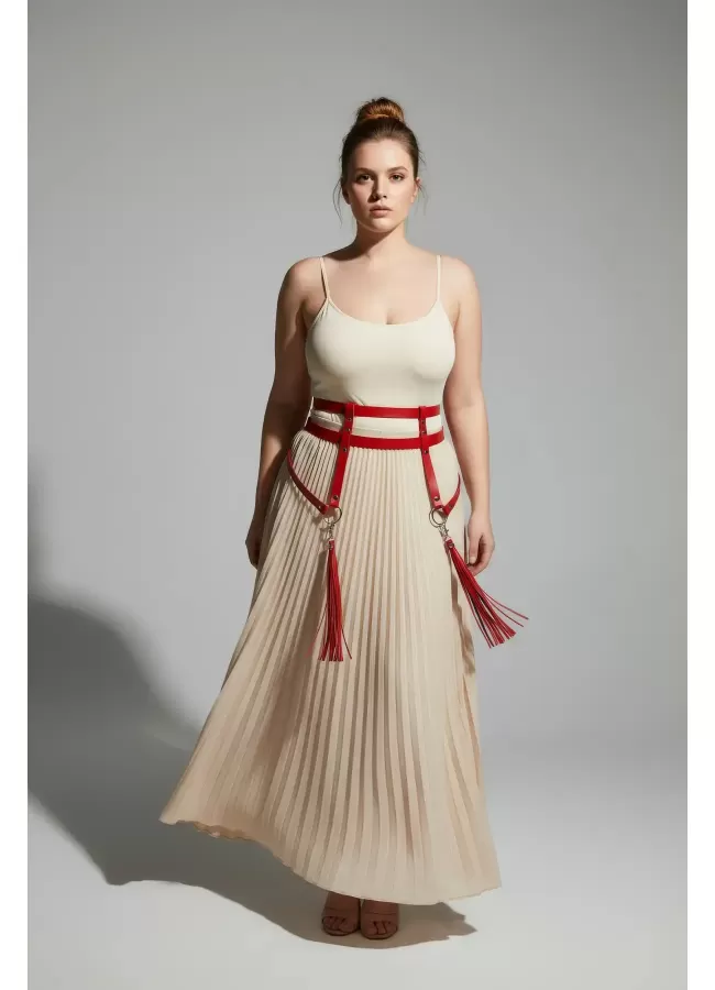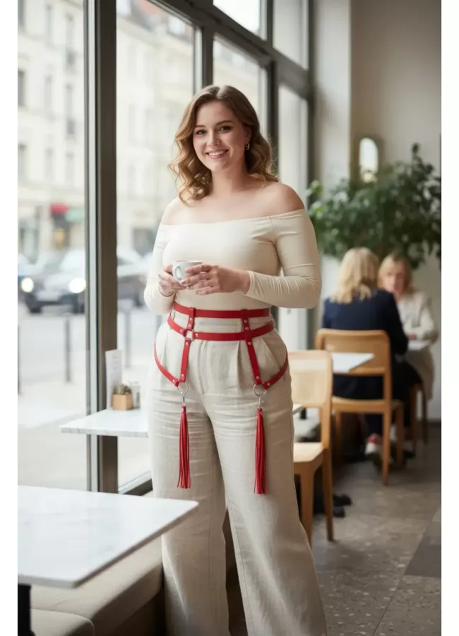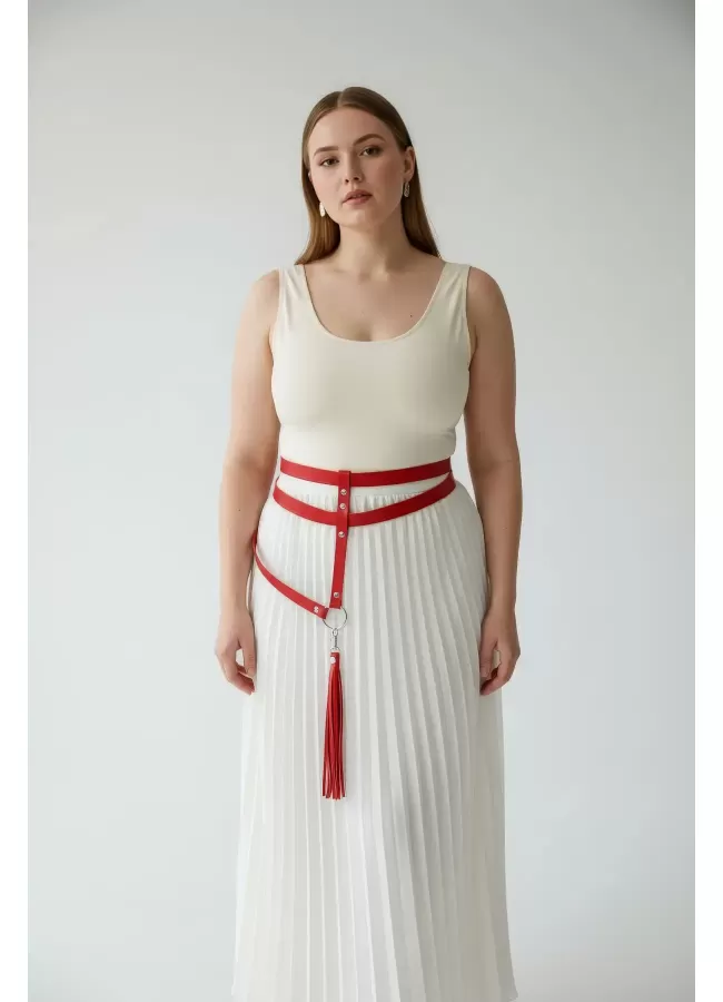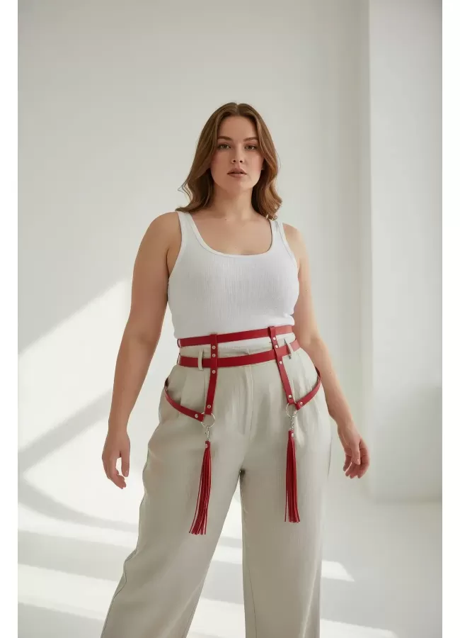 Büyük Beden Kırmızı Kadın Kemer Püskül Detaylı Deri Jartiyer Aksesuarı - APFT645