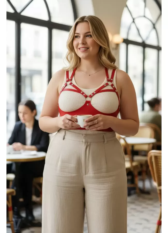 Büyük Beden Kırmızı Kadın Kemer Şık Deri Vücut Aksesuarı - APFT872