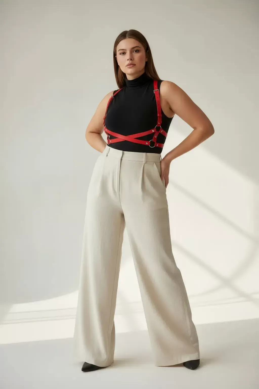 Büyük Beden Kırmızı Kadın Kemer Vücudu Saran O Halka Detaylı Deri Aksesuar. - APFT204