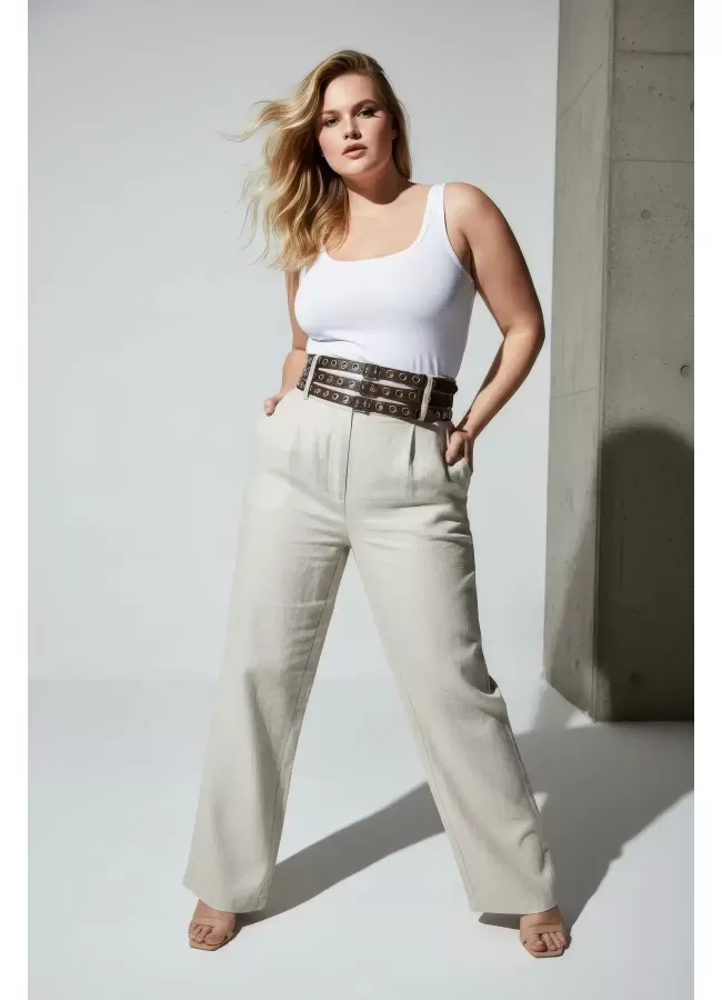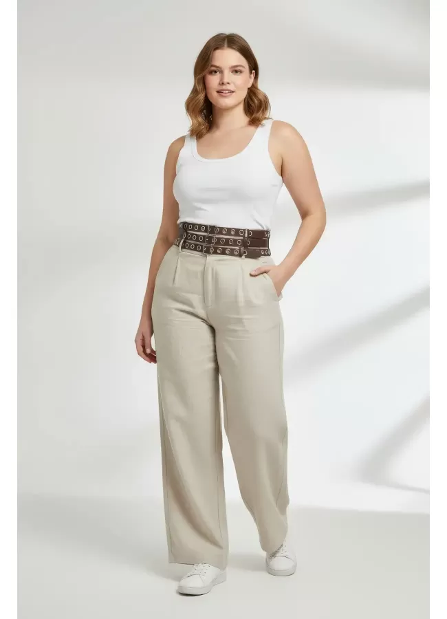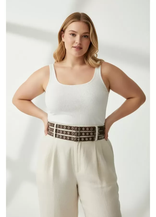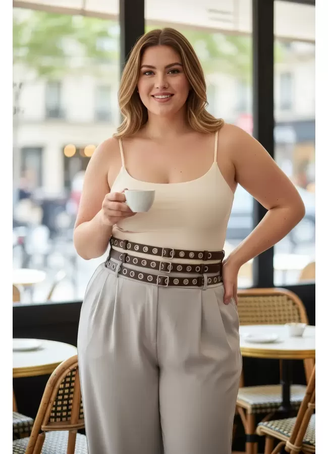 Büyük Beden Taba Kadın Korse Kemer Omuz Askılı Bağcık Detaylı - APFT1429