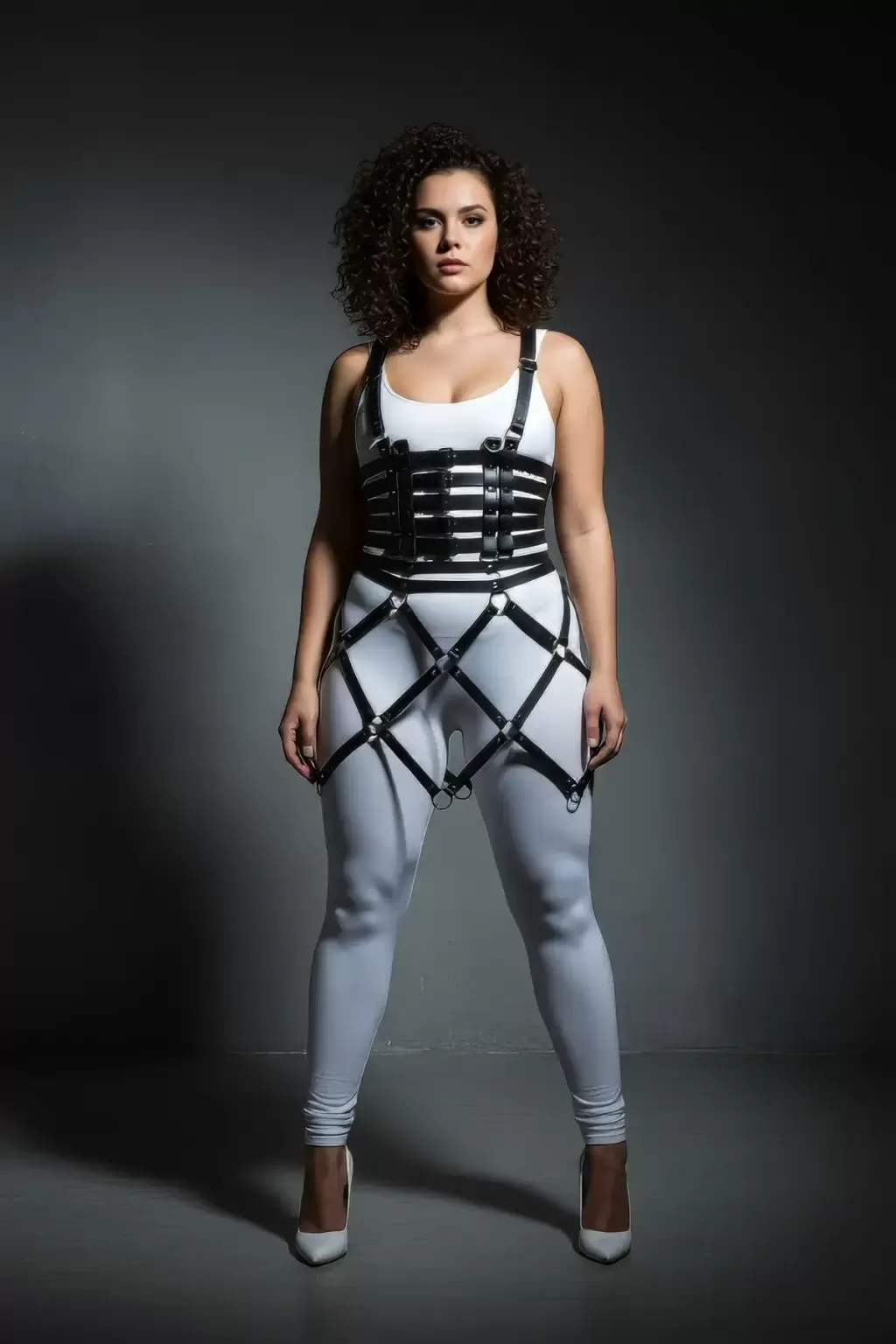 Büyük Beden Siyah Deri Etek Harness Halka Detaylı Fantazi Vücut Aksesuarı - APFT785