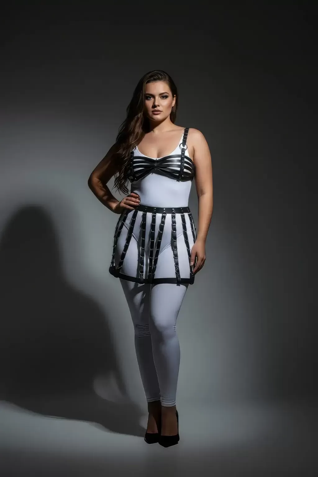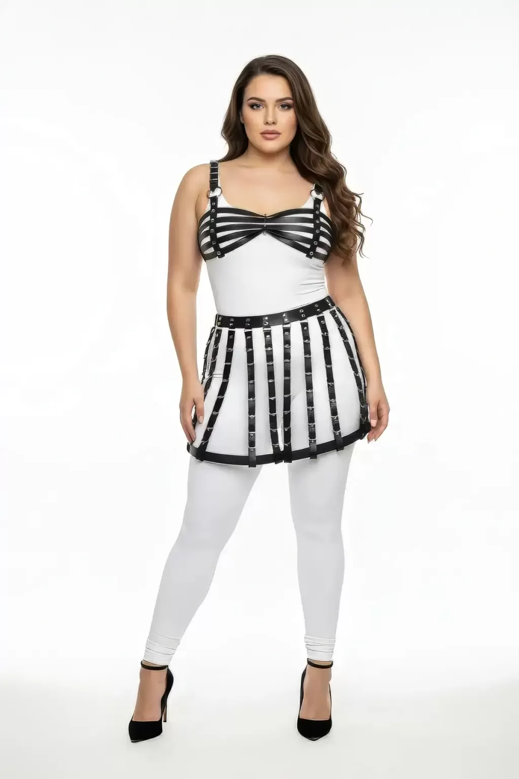 Büyük Beden Siyah Deri Kemer Detaylı Harness Etek Aksesuarı - APFT899