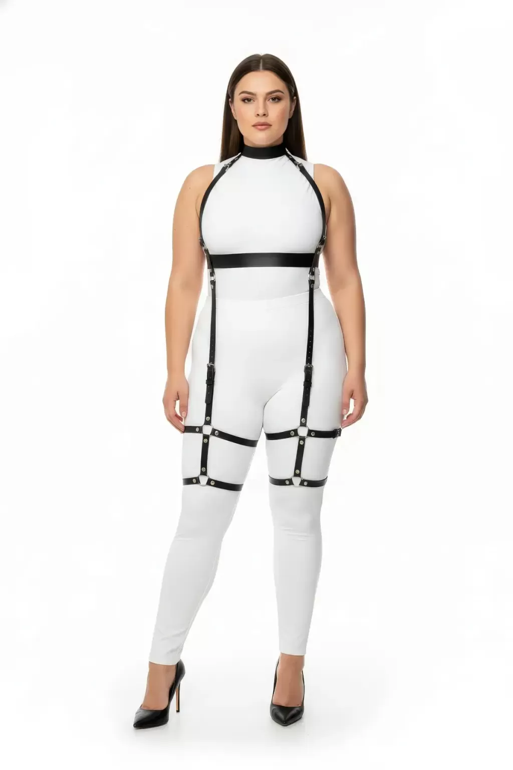 Büyük Beden Siyah Kadın Deri Full Body Harness Takım Şık Vücut Aksesuarı - APFT864