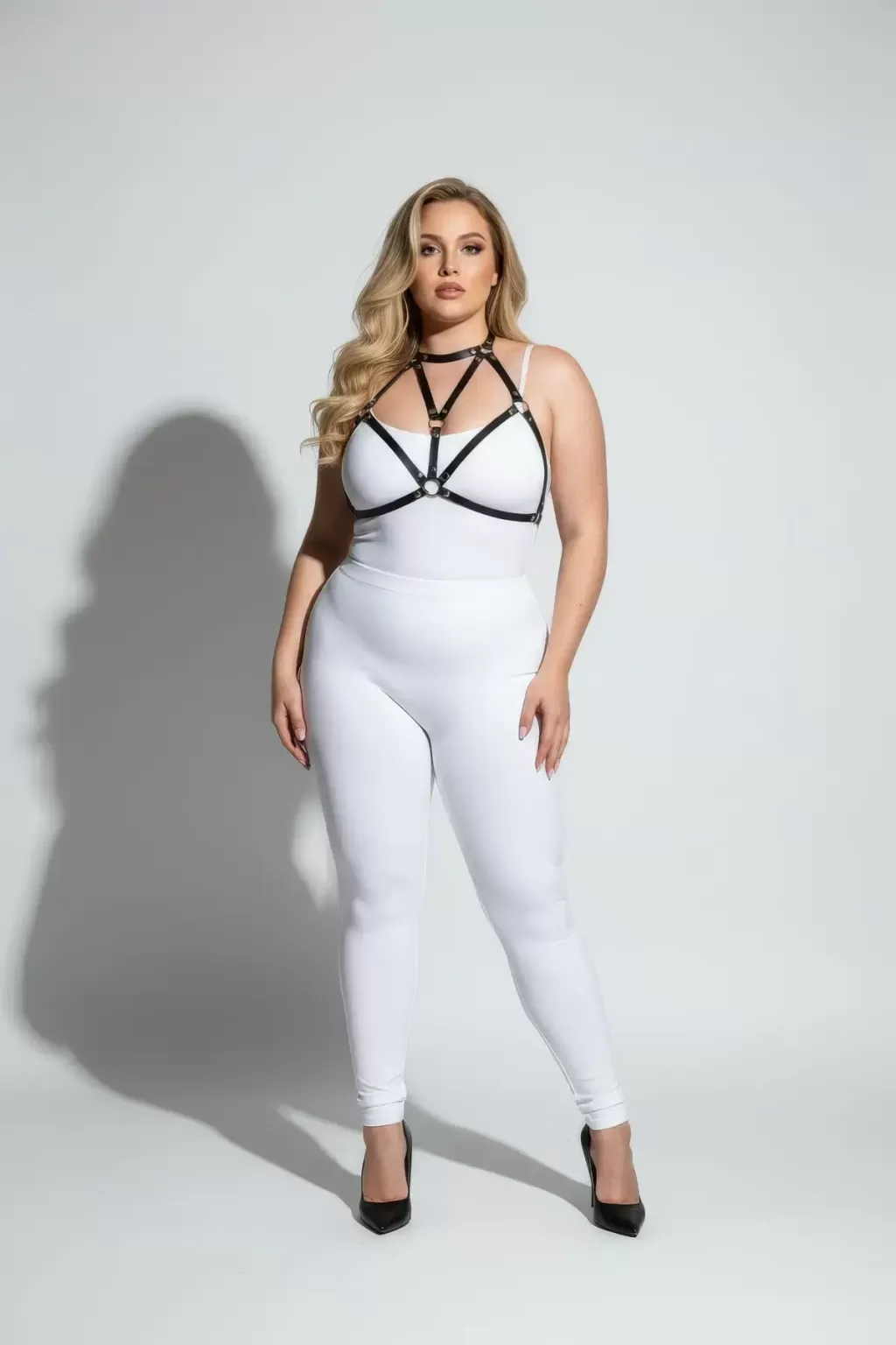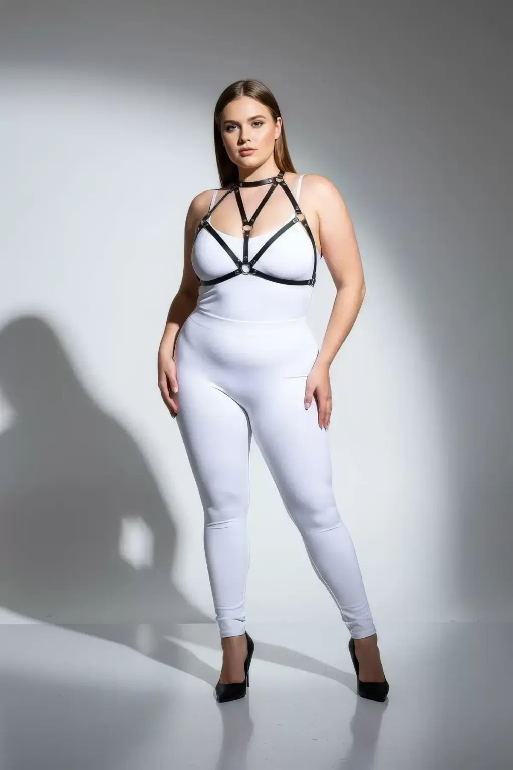 Büyük Beden Siyah Kadın Deri Göğüs Harness Fantazi Aksesuarı - APFT244