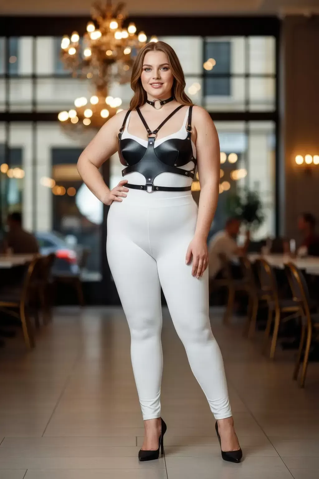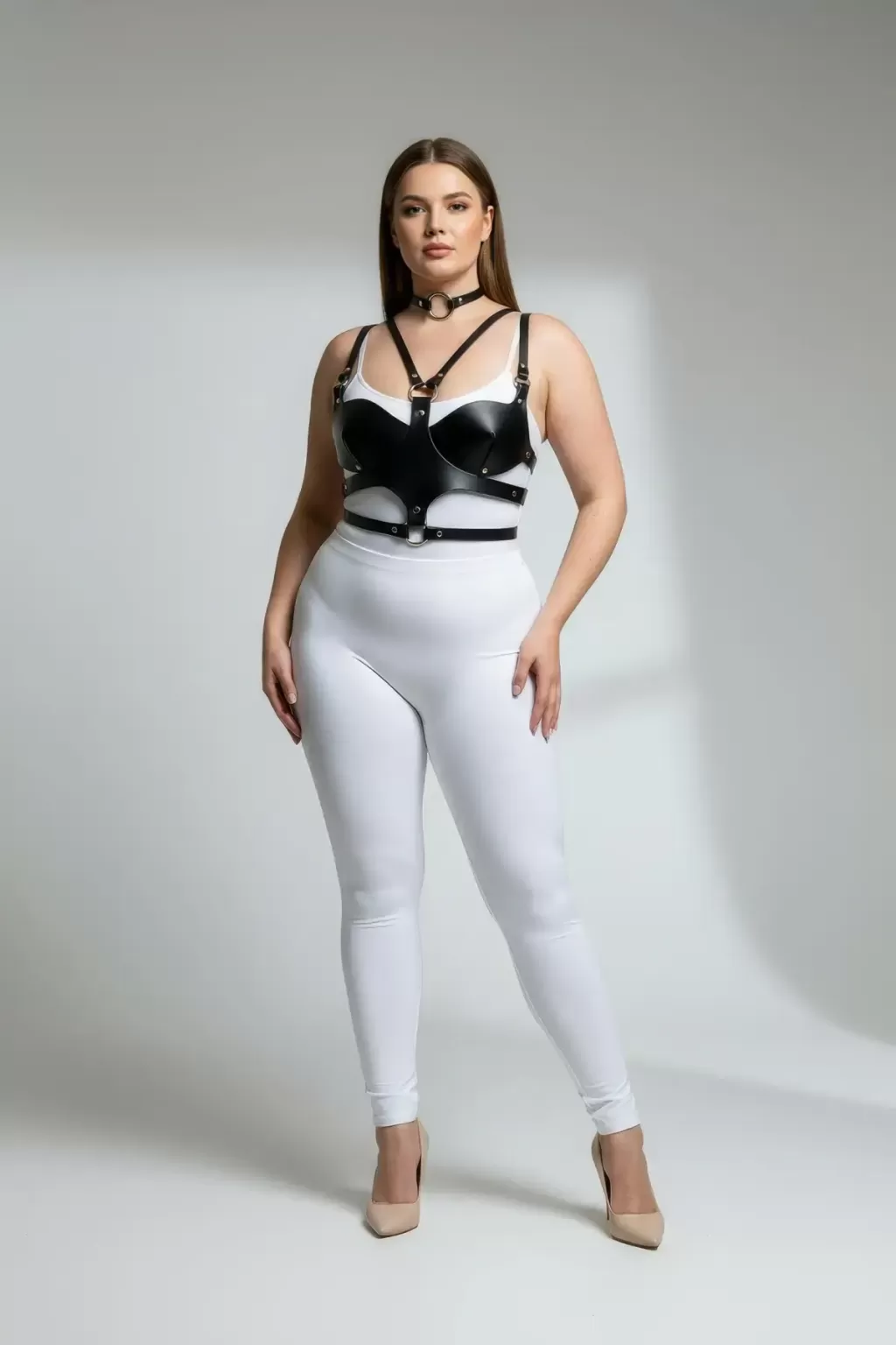 Büyük Beden Siyah Kadın Deri Göğüs Harness Takım Choker Detaylı Fantezi Aksesuar - APFT1296