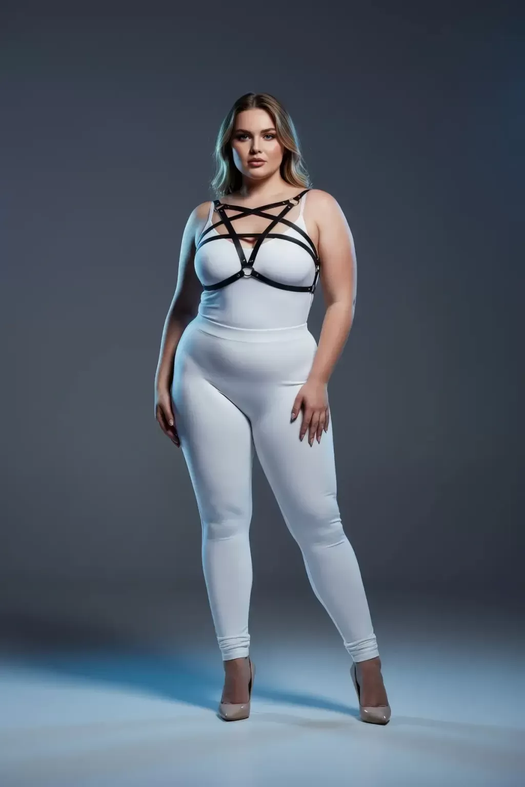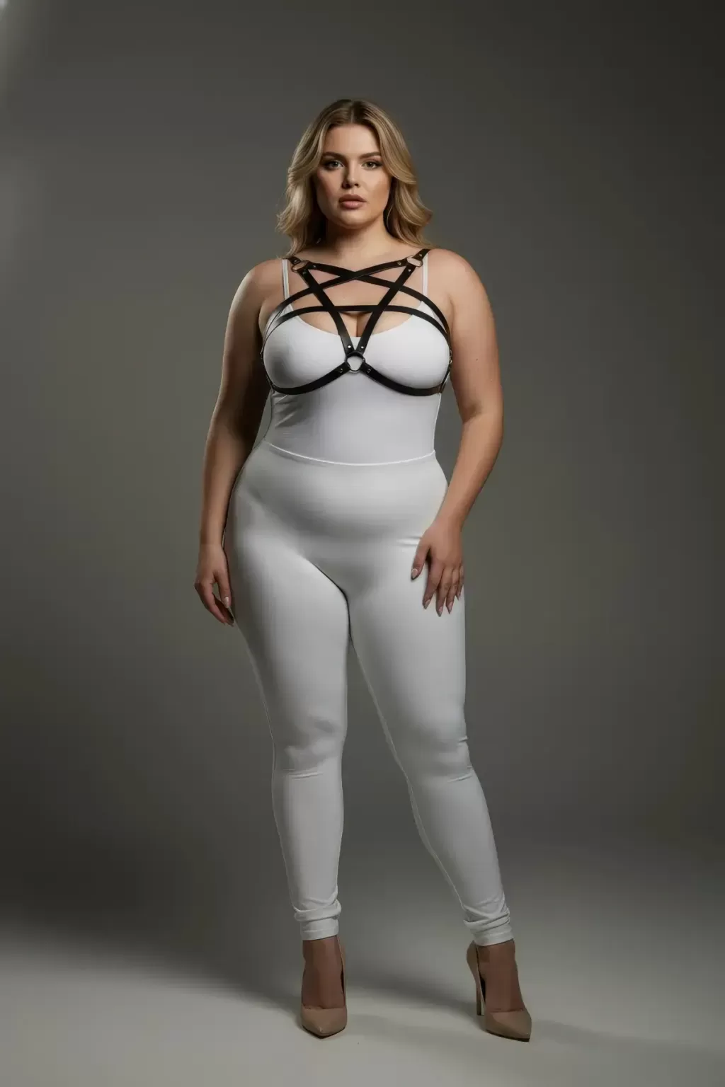Büyük Beden Siyah Kadın Deri Göğüs Harness Takımı Şık Vücut Aksesuarı - APFT167
