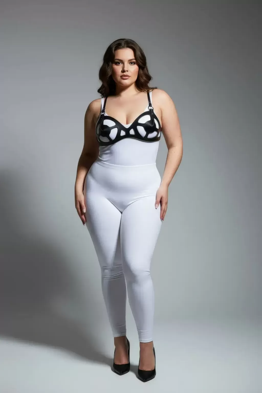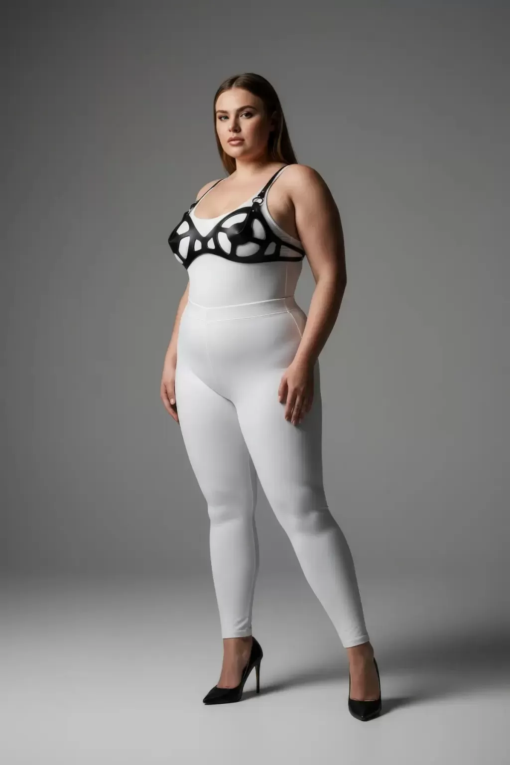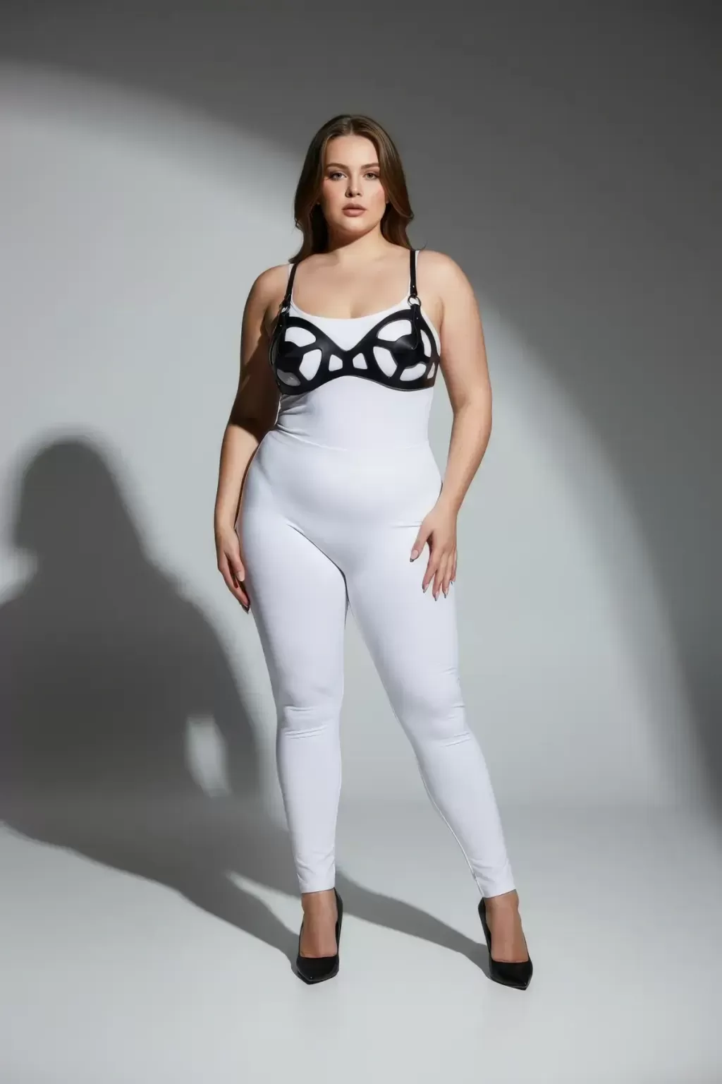Büyük Beden Siyah Kadın Deri Harness Takım Fantezi Giyim Vücut Aksesuarı - APFT1155